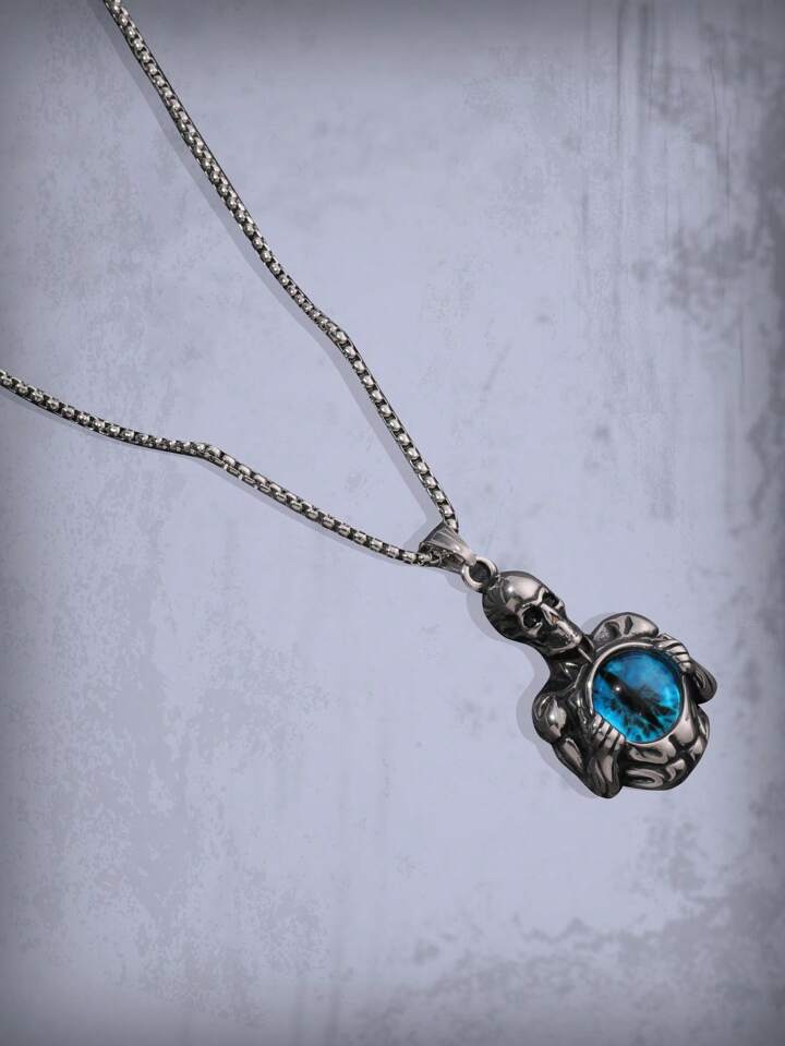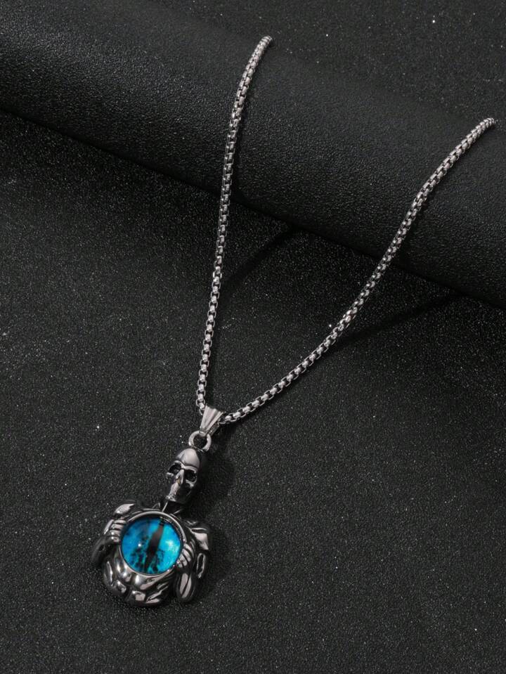 Goth 1pc Punk Stainless Steel Skull & Eye Pendant Necklace For Men For Daily Decoration