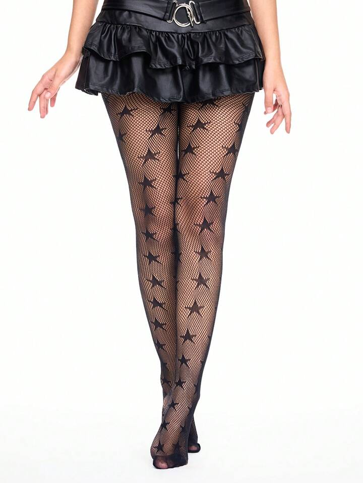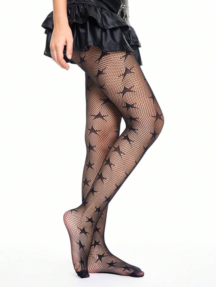 Goth 1pc Punk Star Fishnet Tights, Y2K Hollow-Out Elastic Net Stockings, Suitable For Daily Wear, Dance Party Outfits, Tight Fit