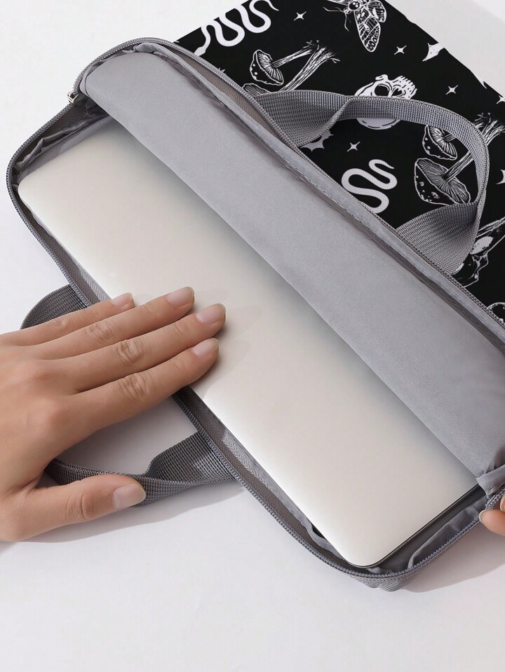 Goth 1pc Skeleton & Mushroom Print Laptop Bag