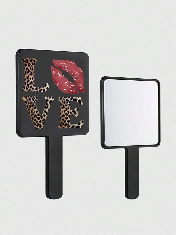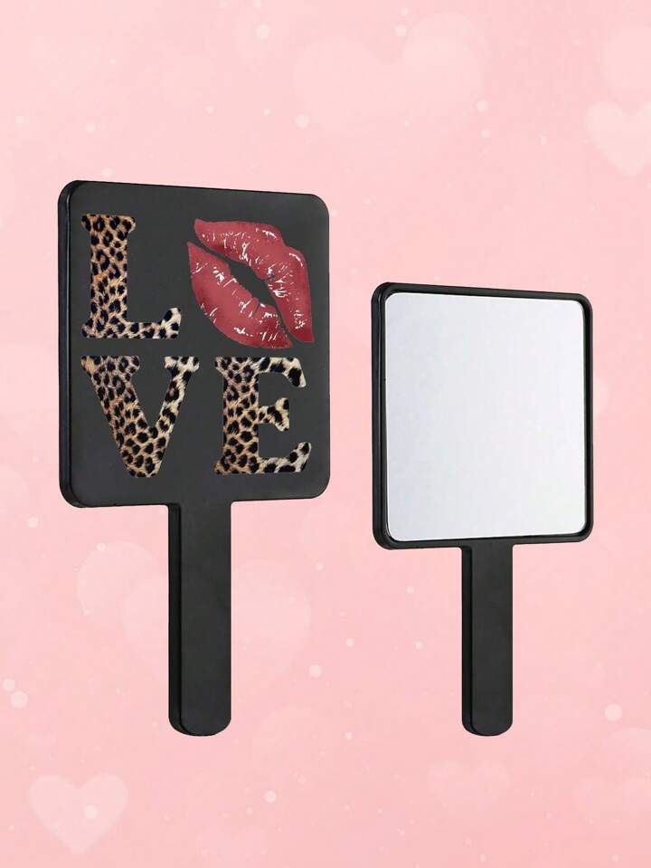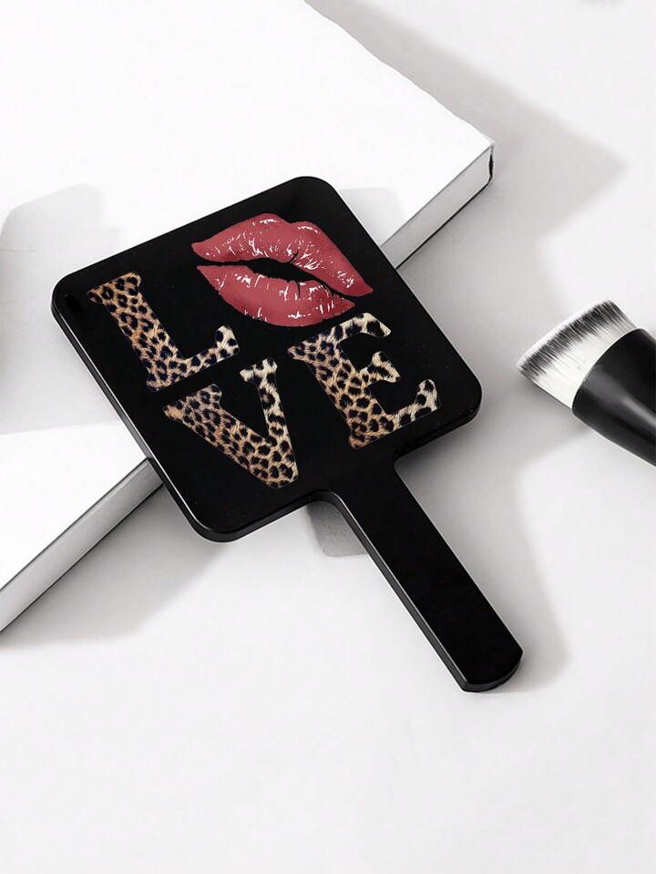 Goth 1pc Valentine's Day Love Leopard Print Red Lip High Definition Makeup Mirror, Premium Portable Compact Mirror For Girls