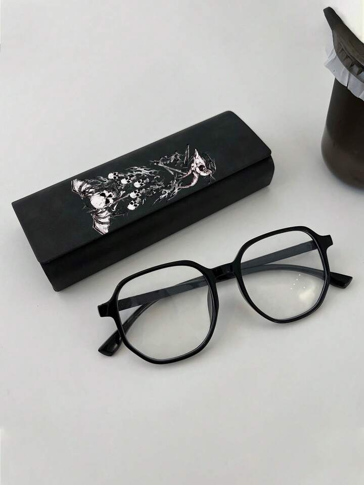 Goth 1pc Women Skull Pattern Fashionable Glasses Case For Daily Life