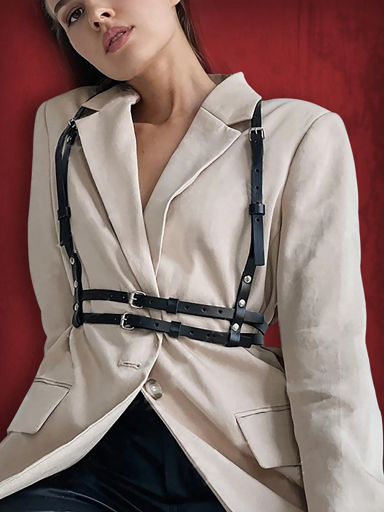 Goth 1pc Women's Black Double Layered Belt Punk Style Suspender Skirt
