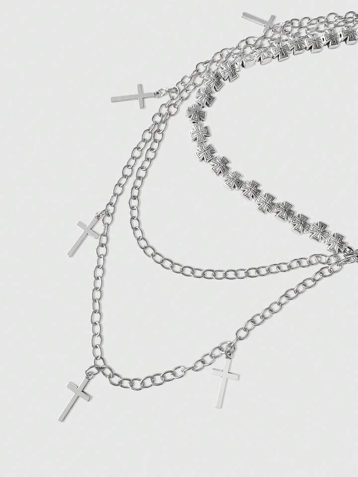 Goth 1pc Women's Double-Layer Cross Metal Waist Chain, Three-Tier Punk Street Style, Versatile For Daily Wear