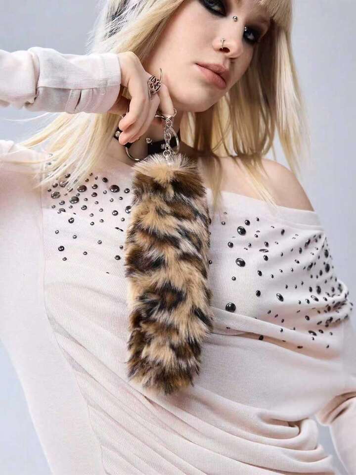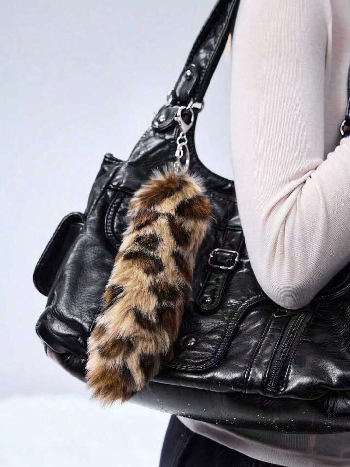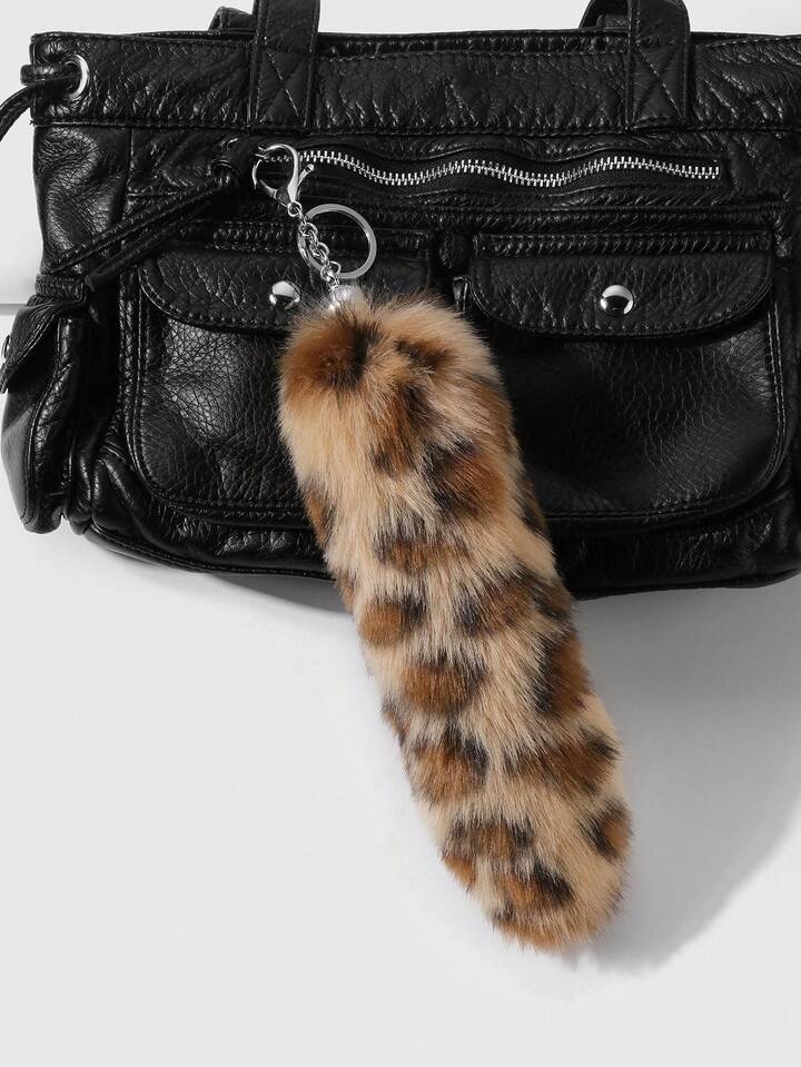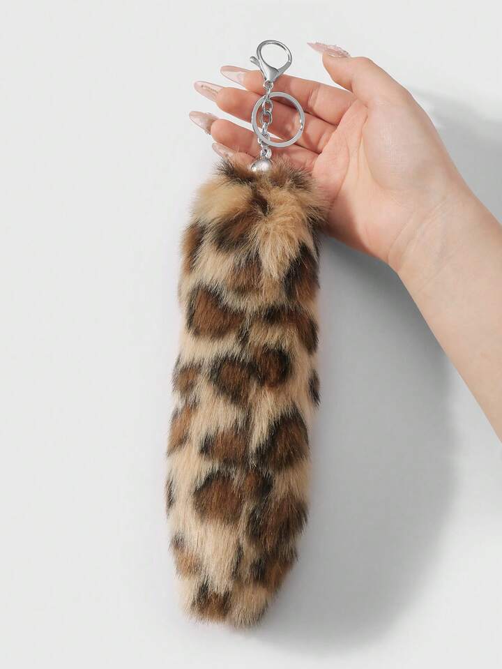 Goth 1pc Y2K Retro Luxury Fashionable Fluffy Fluffy Brown Leopard Tiger Stripe Animal Print Tail Keychain Bag Charm, Suitable For Cosplay, Daily Wear, Gifts