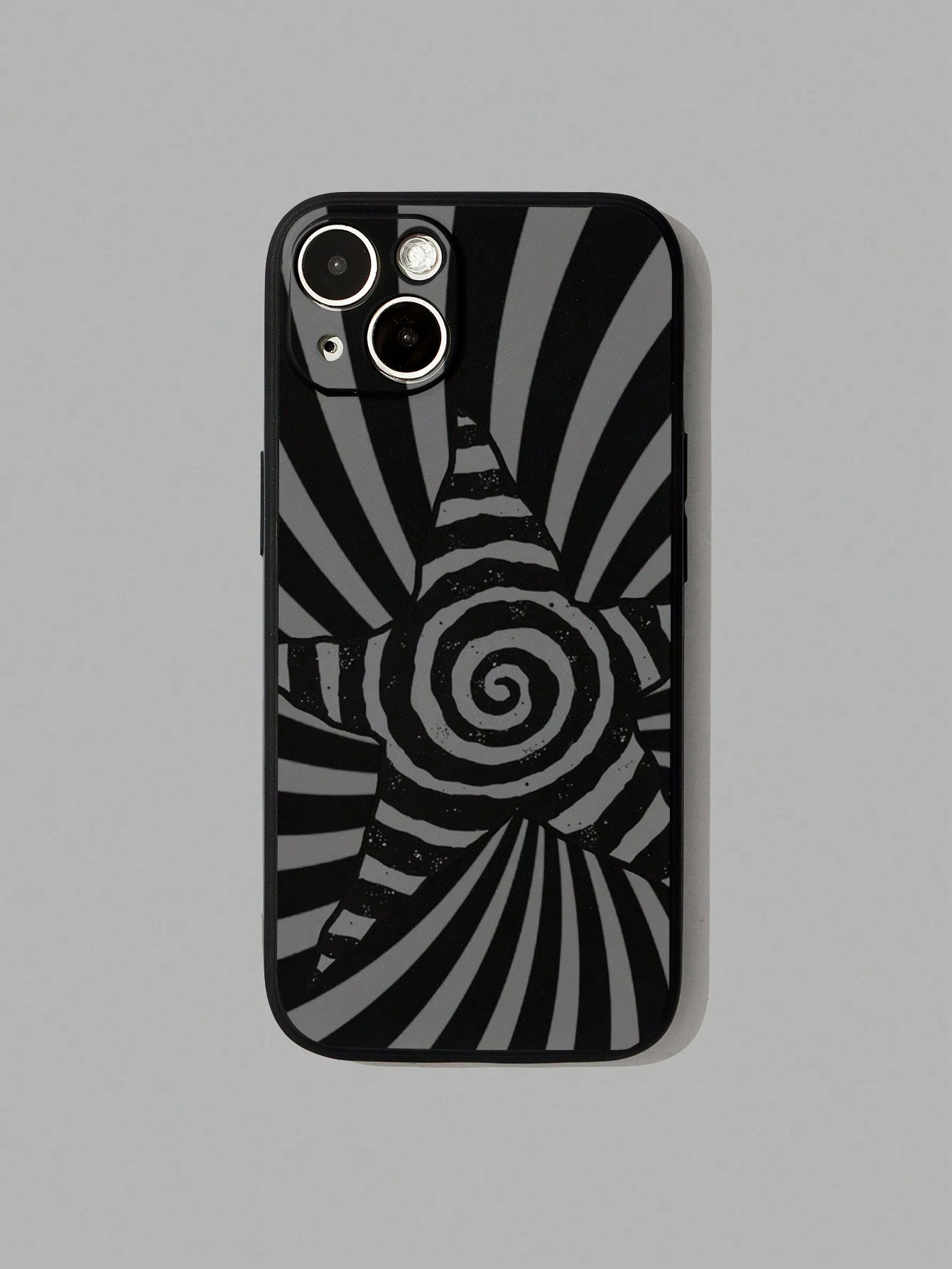 Goth 1pc Y2K Style Pentagram Swirl Pattern Black Phone Case