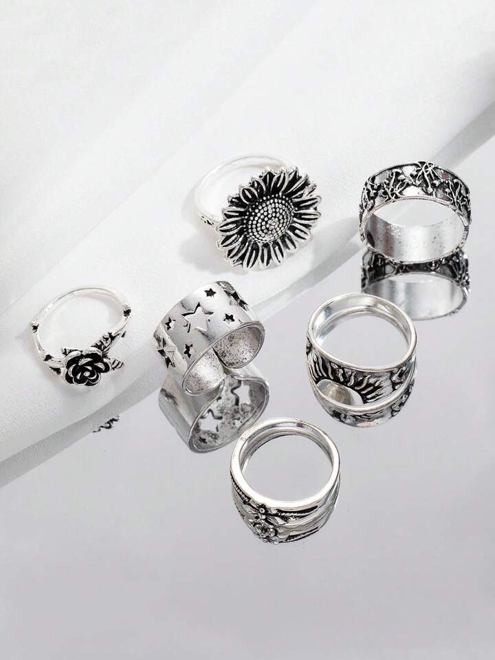 Goth 1set/6pcs Star, Sunflower & Flower Design Ring Set