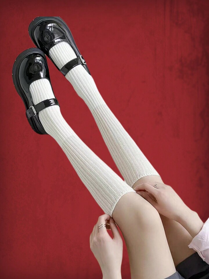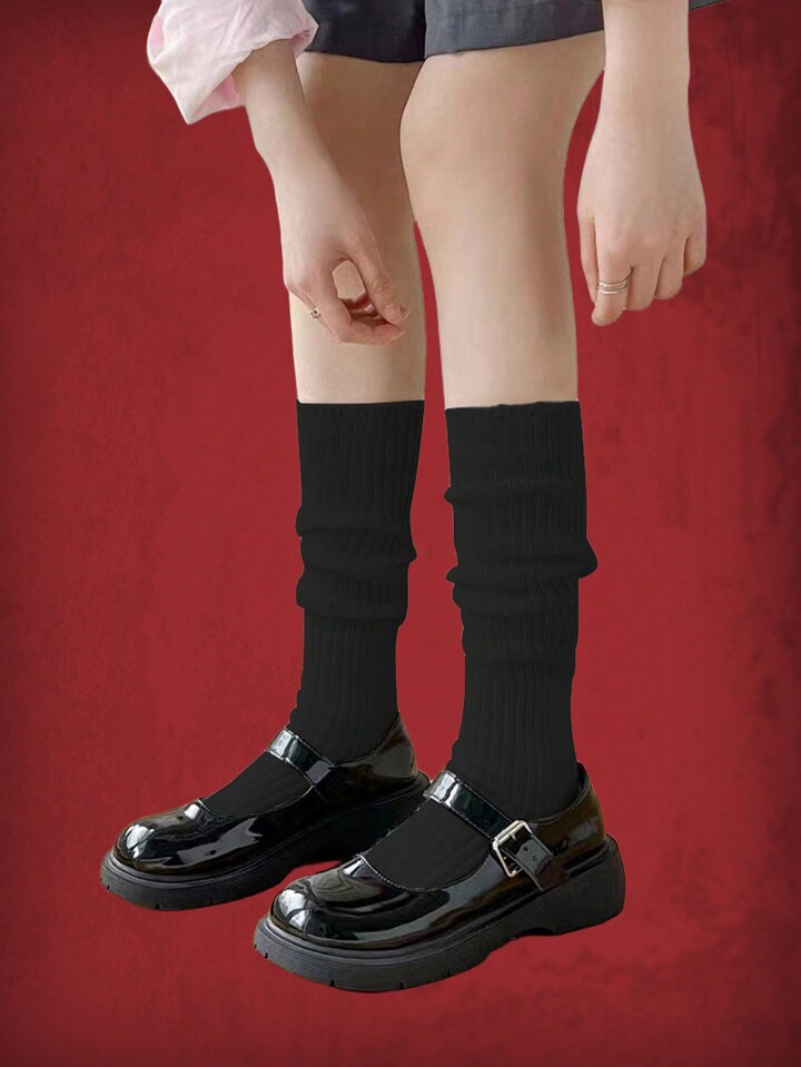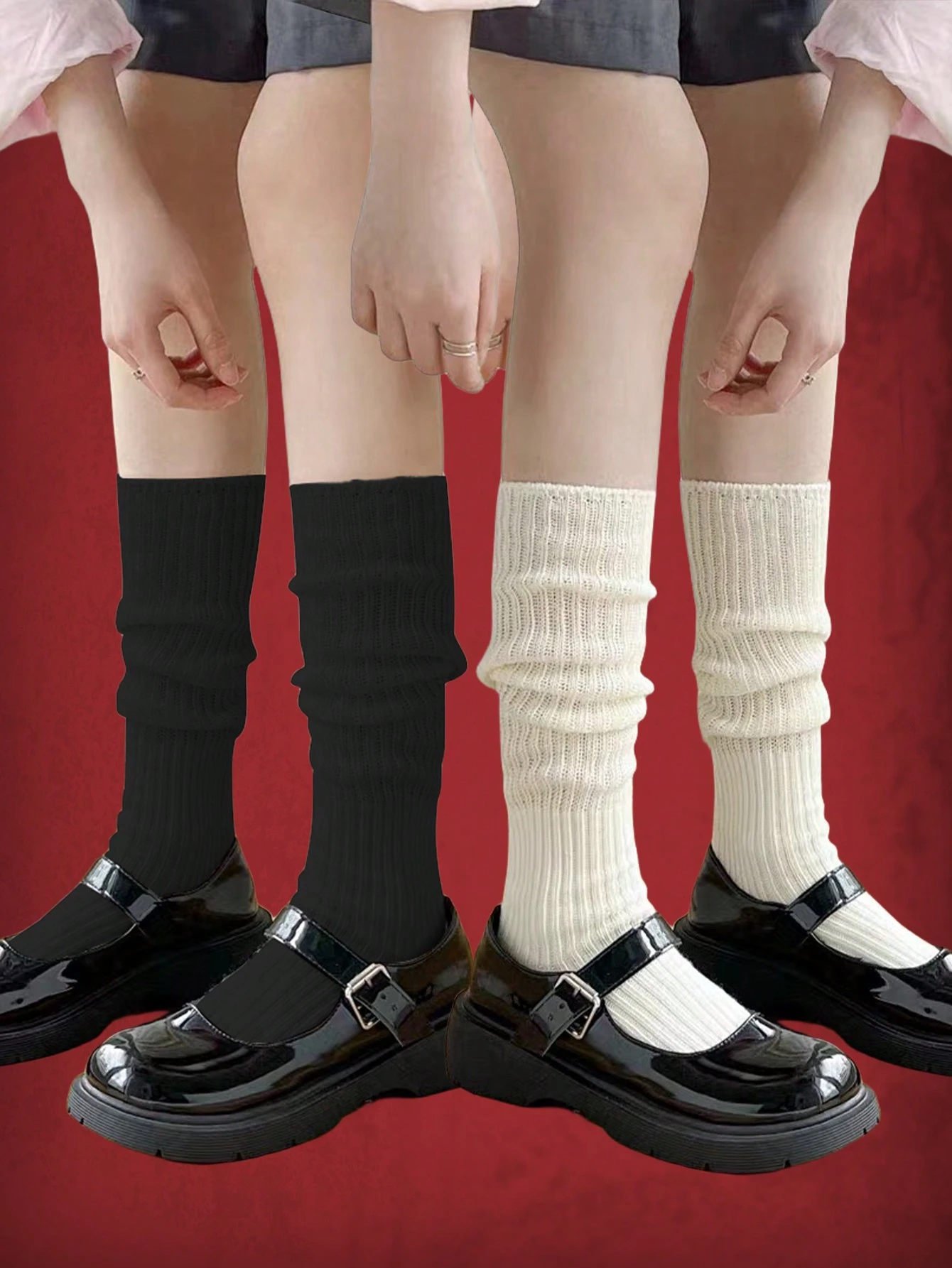 Goth 2pairs Solid Color Knit Leg Warmers For Women