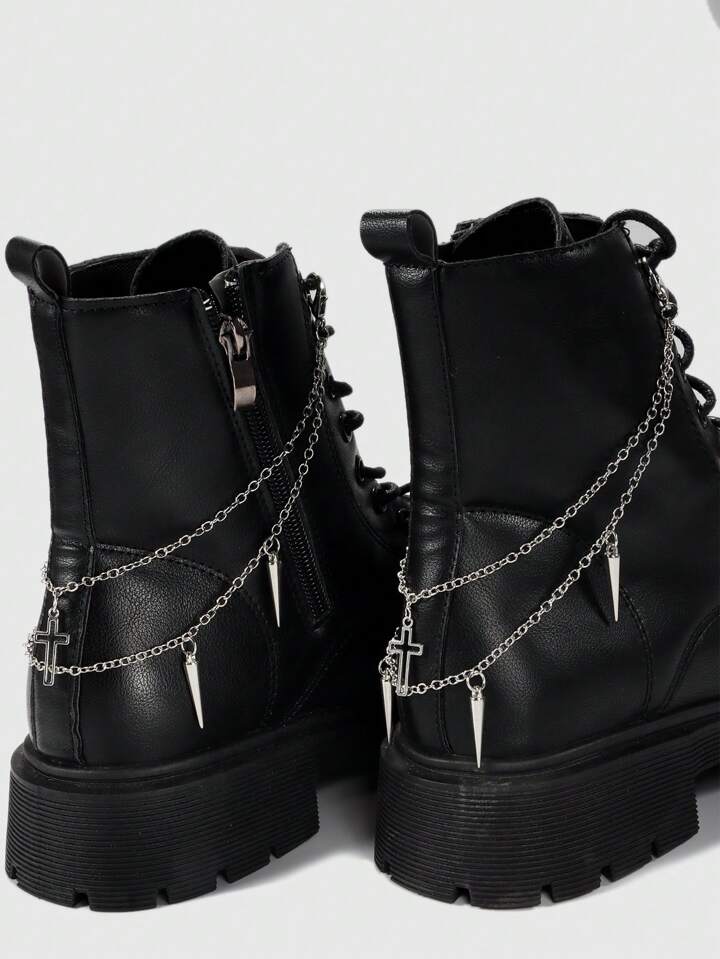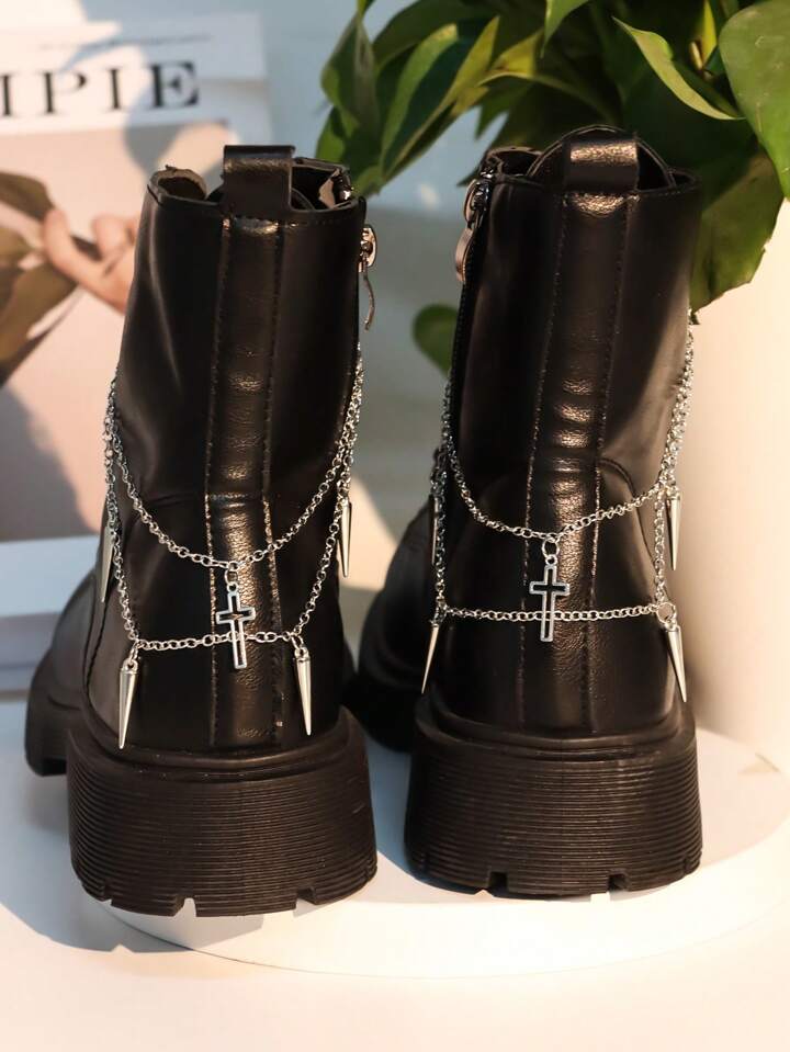 Goth 2pcs Punk Style Chain Shoe Ornament, Suitable For Shoes And Boots