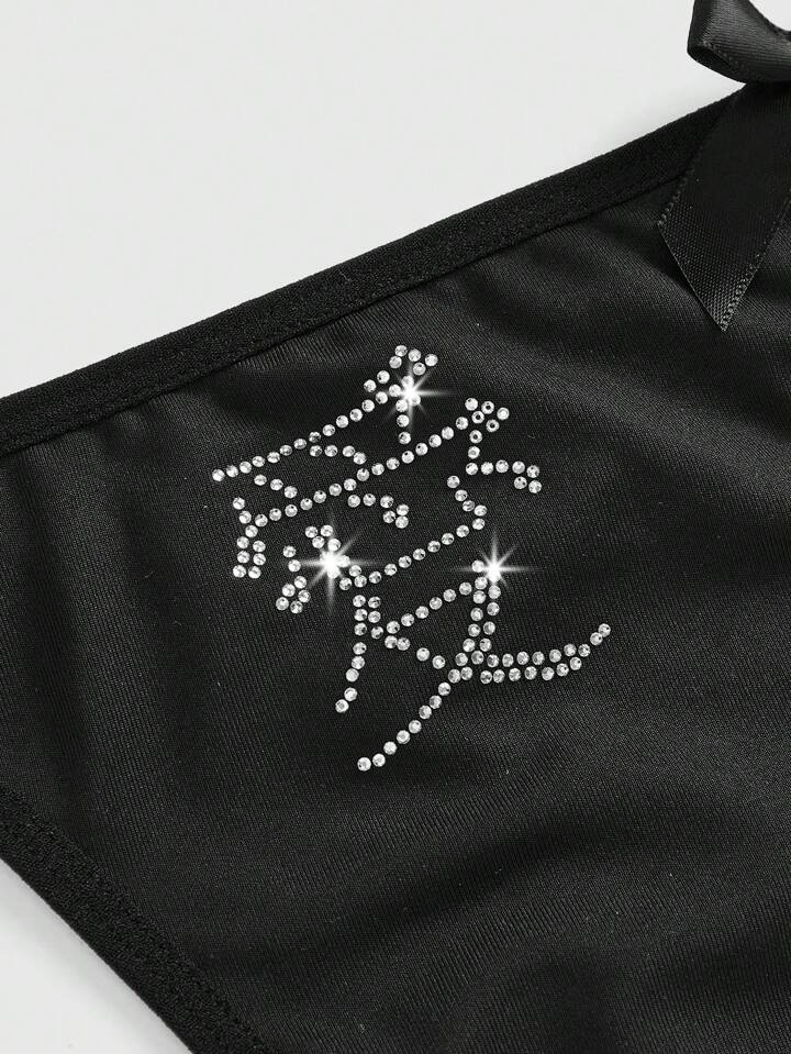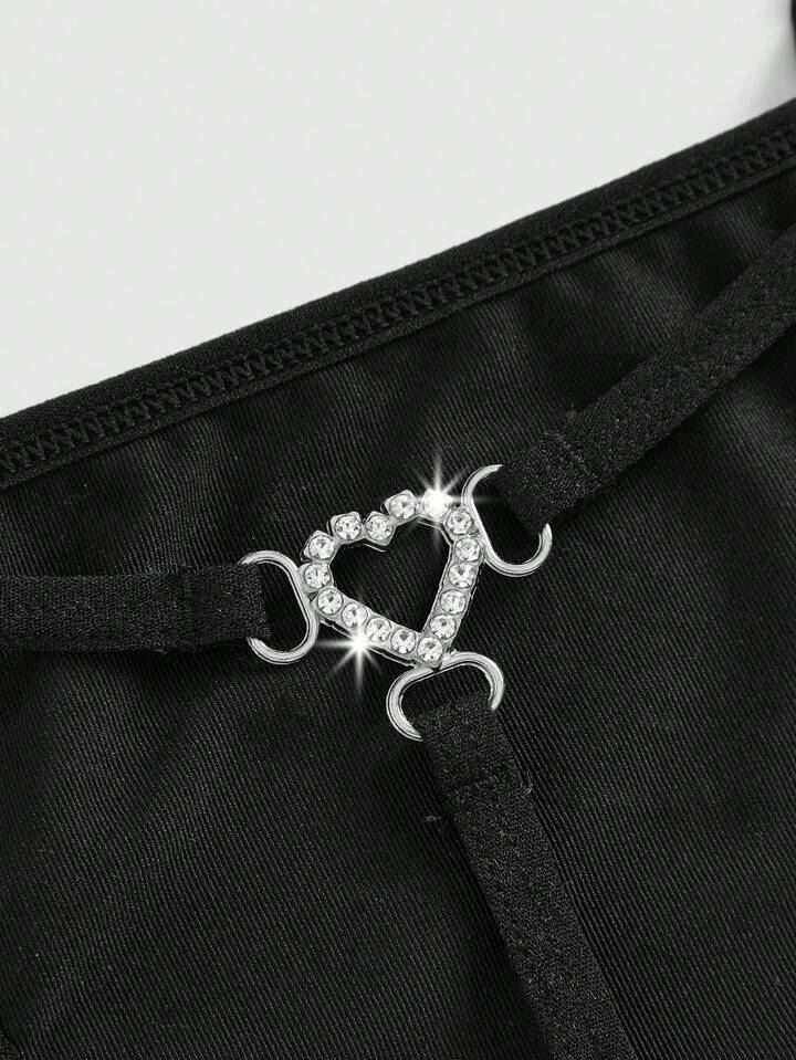Goth 2pcs/Set Dark Romantic Valentine's Day Love & Skull Crystal Studded Women Thong Panties
