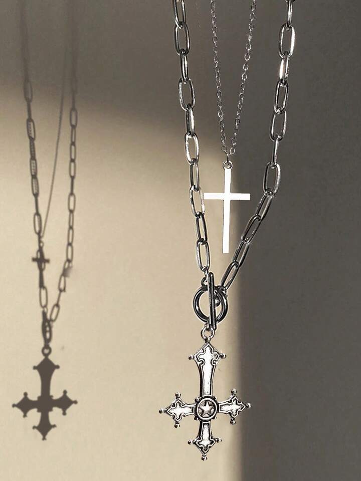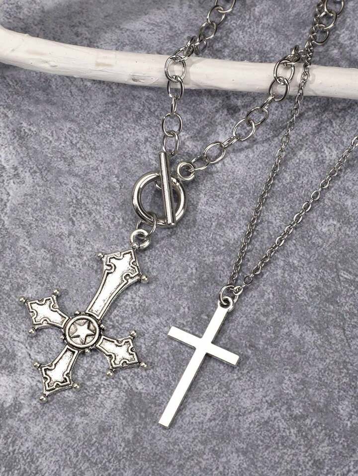 Goth 2pcs/set Cross Pendant Necklace