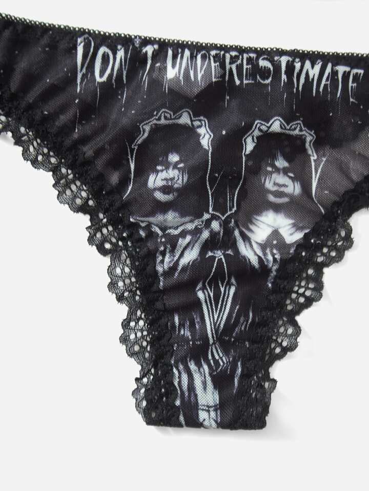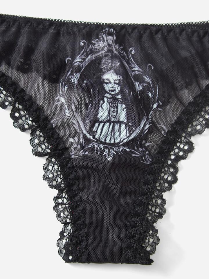 Goth 3pack Figure Print Contrast Lace Panty Set