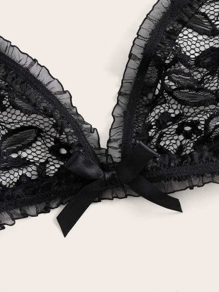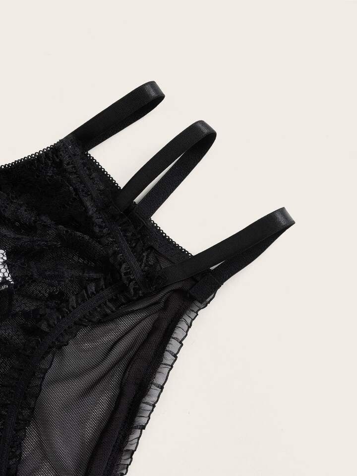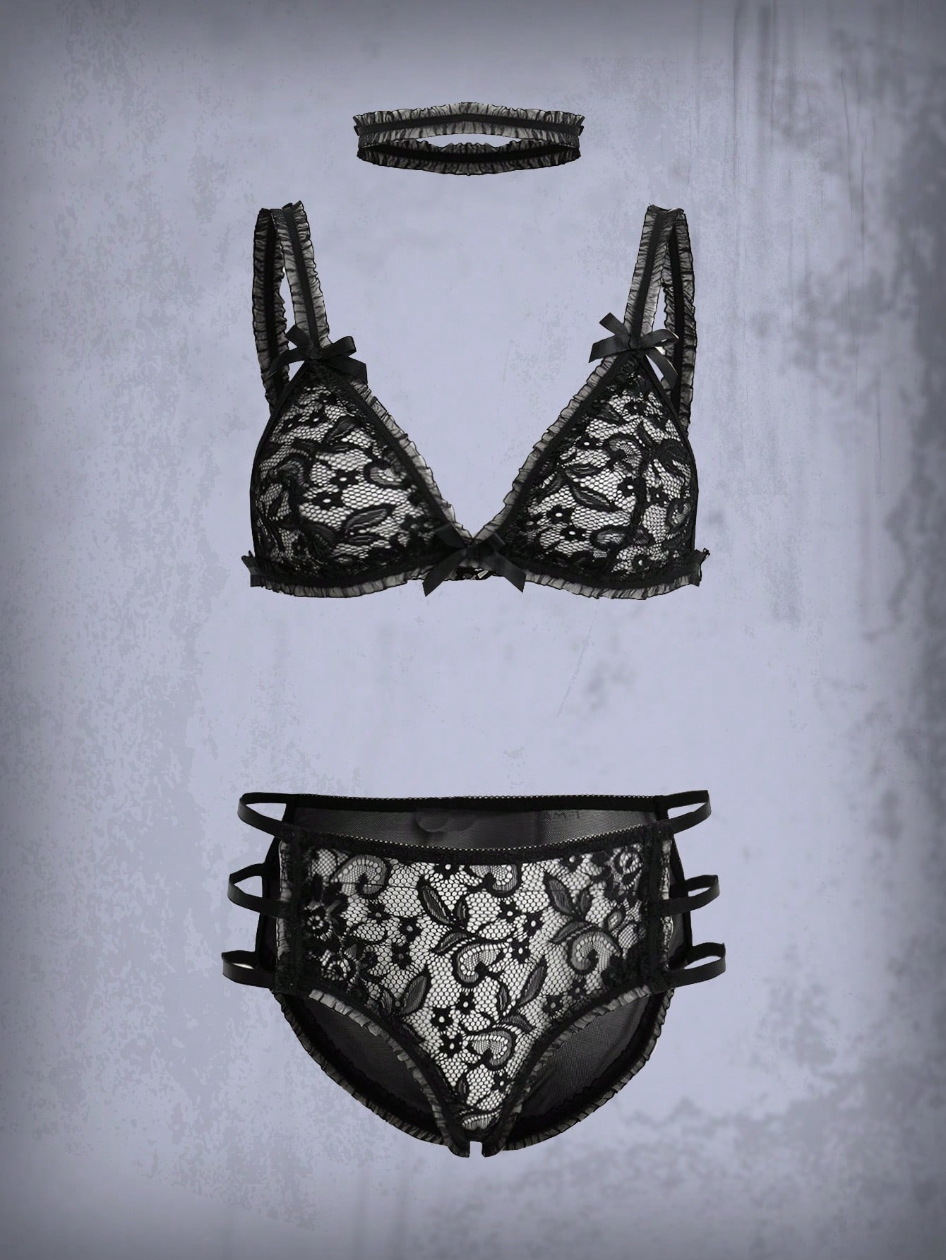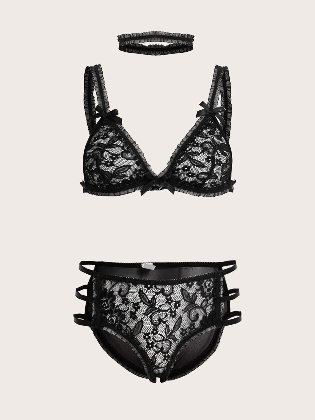 Goth 3pack Floral Lace Cut Out Lingerie Set With Choker