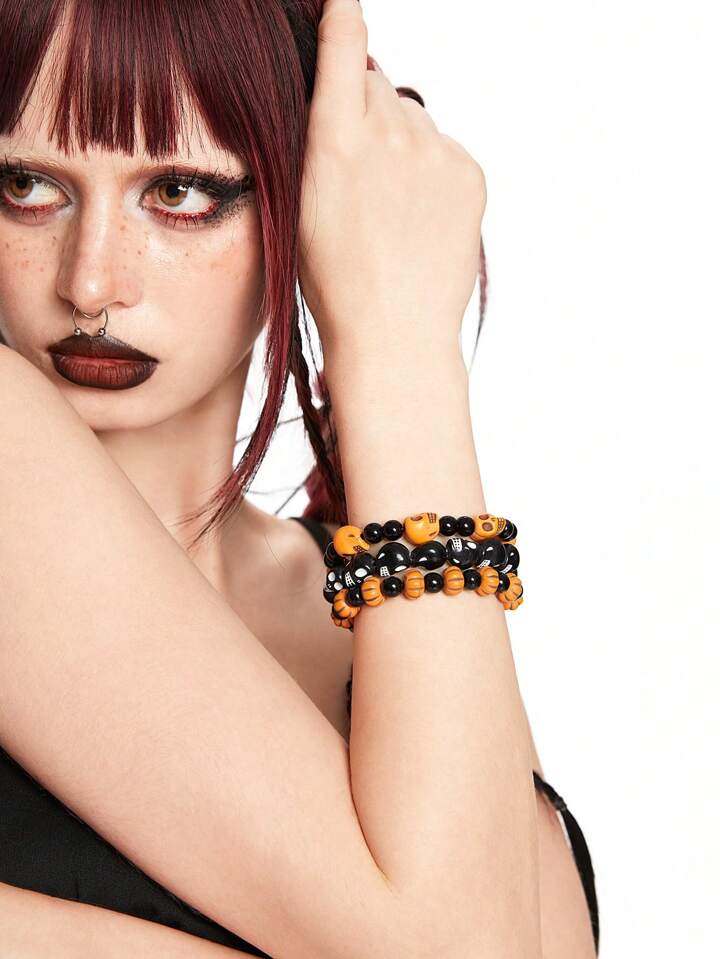 Goth 3pcs/Set Skull Pumpkin Dark Punk Style Bracelet Set