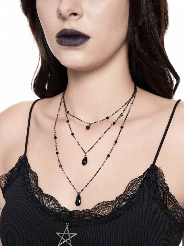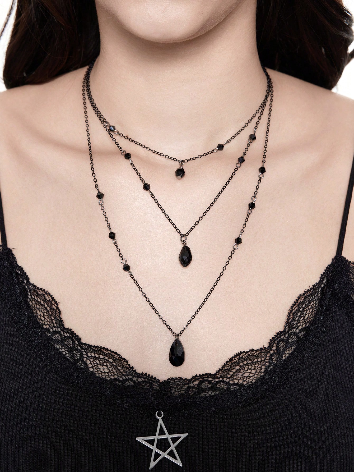Goth 3pcs Vintage Minimalist Crystal Pendant Necklace Set