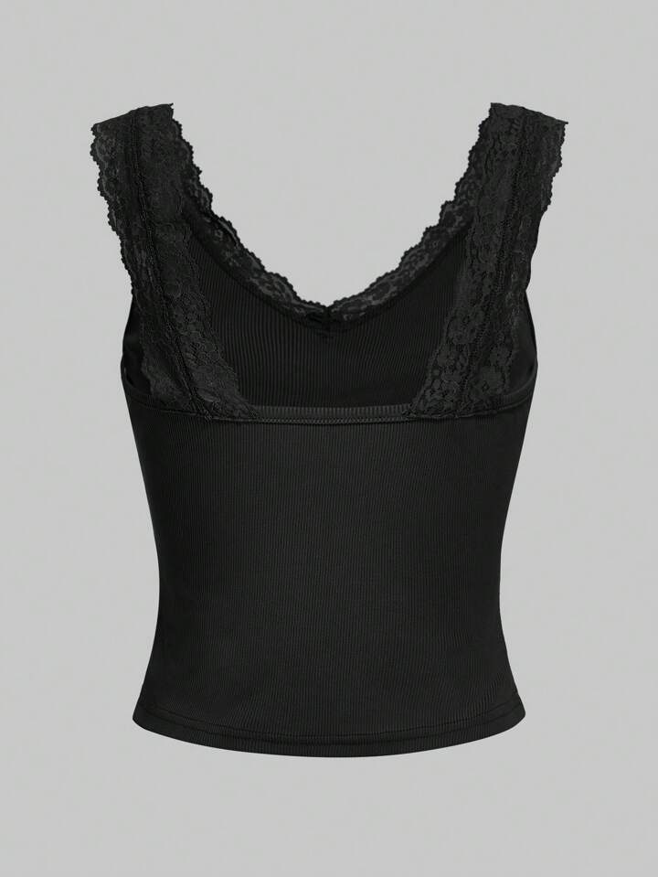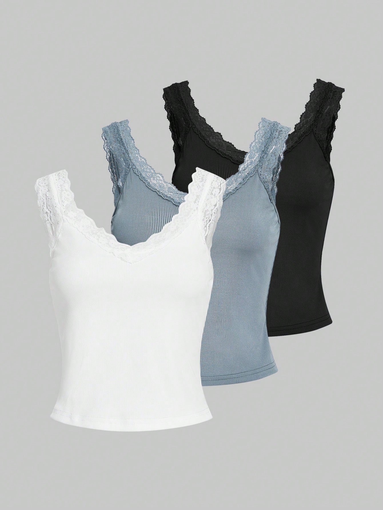Goth 3pcs Women's Casual Solid Color Lace Strap V-Neck Camisole Top