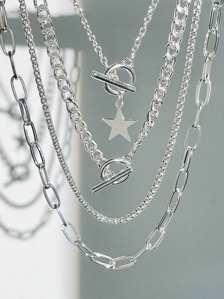 Goth 4pcs/Set Fashionable Punk Style Star Pendant Necklaces