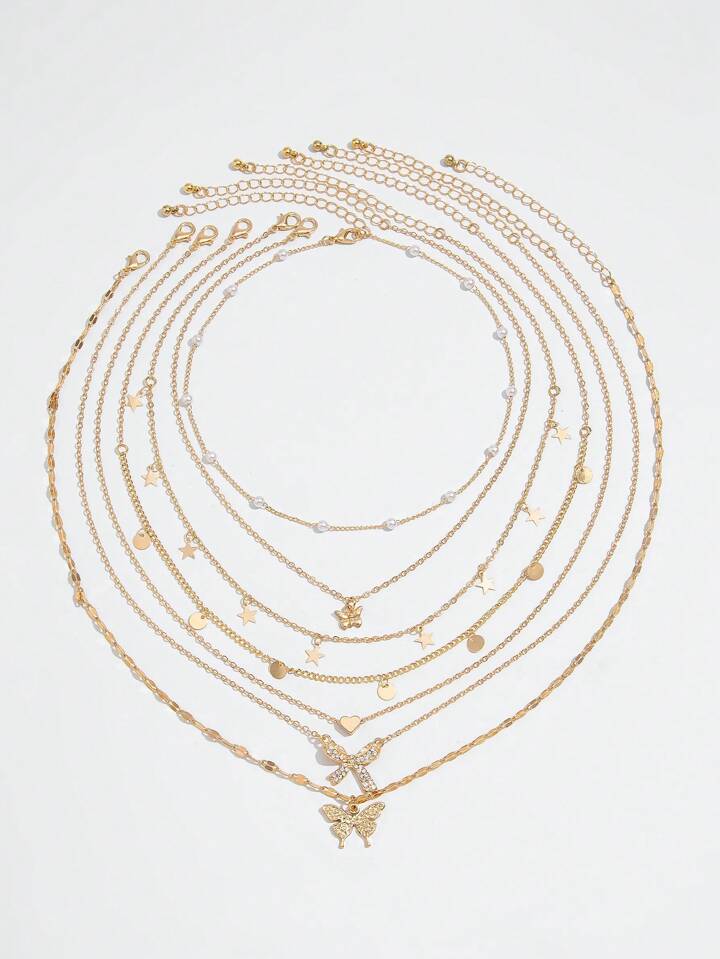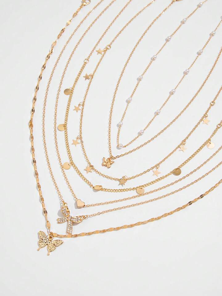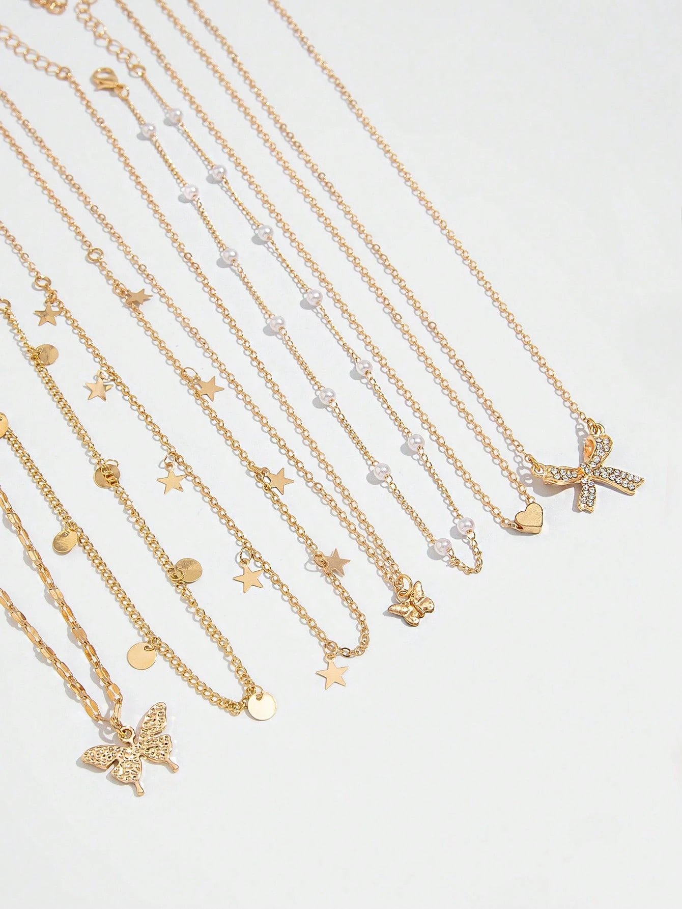 Goth 5pcs/Set Fashionable Cute Heart-Shaped Pendant Necklaces, Stackable Multi-Layer Necklace, Women's Daily, Party, Gift For Friends & Mothers, Couple Necklace