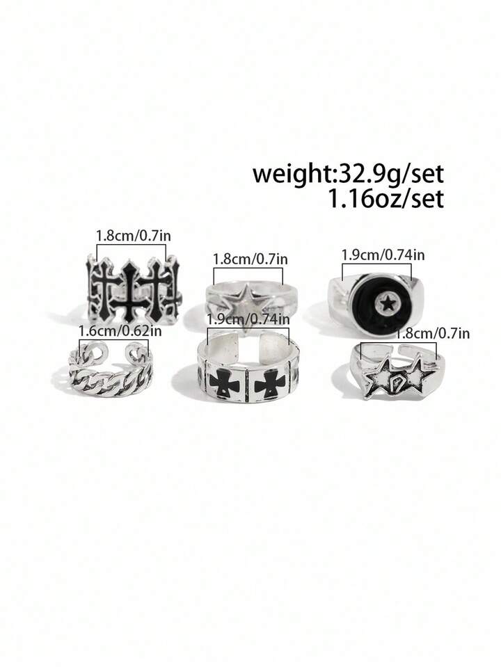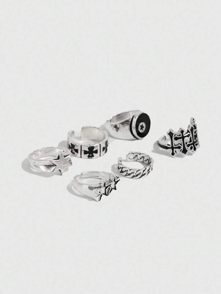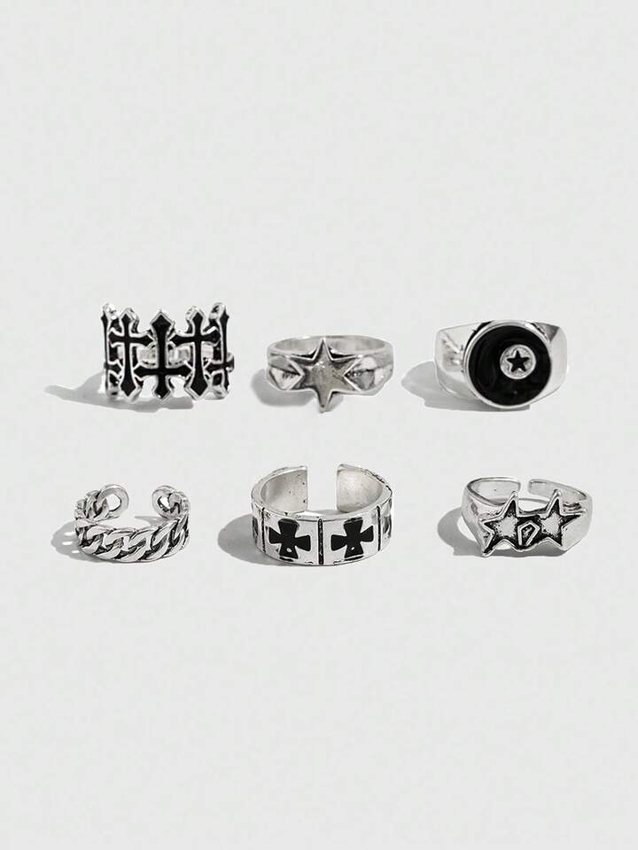 Goth 6pcs Adjustable Punk Star Rings, Couple Rings, Holiday Gift