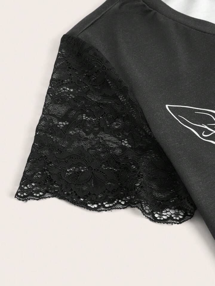 Goth Animal Graphic Contrast Lace PJ Set