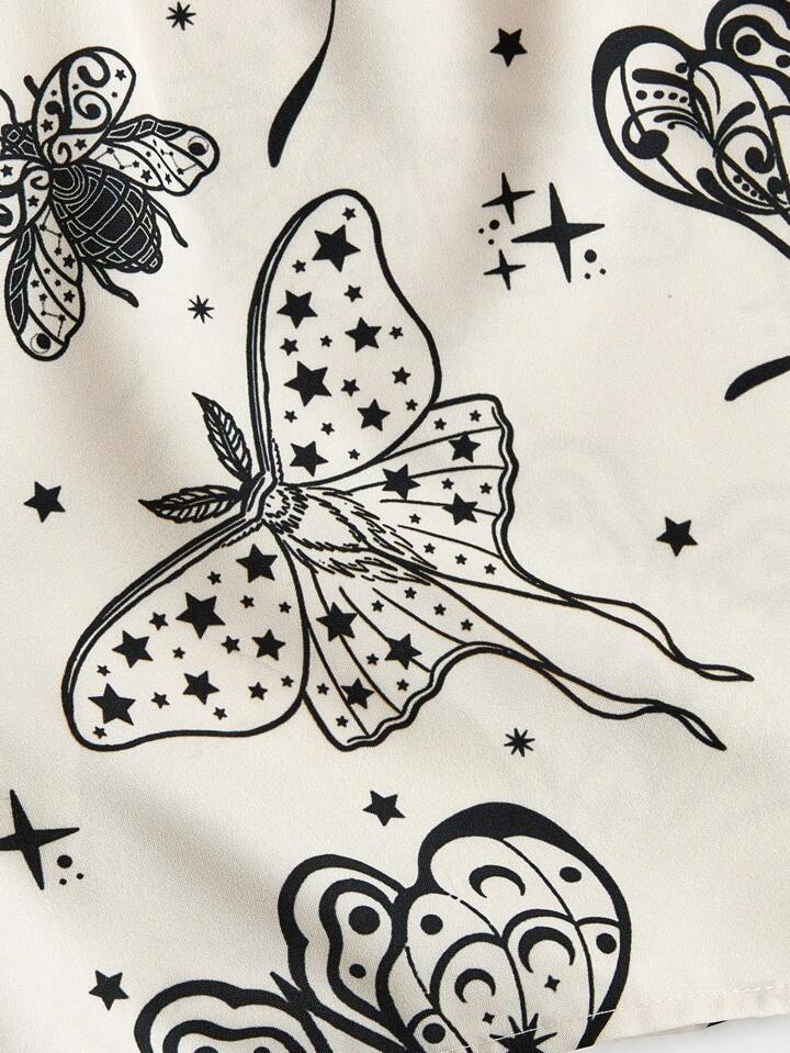 Goth Butterfly Printed Spaghetti Strap Elastic Waist Romper For Women
