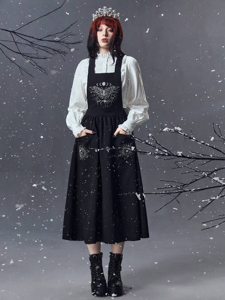 Goth Butterfly & Sun Embroidery Overall Dress Without Blouse