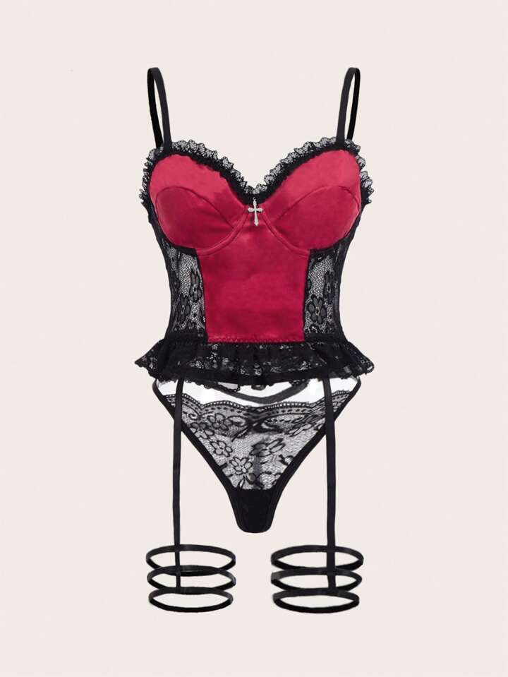 Goth Contrast Lace Underwire Garter Lingerie Set