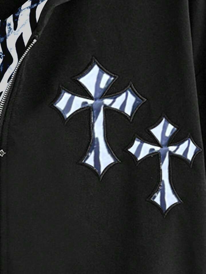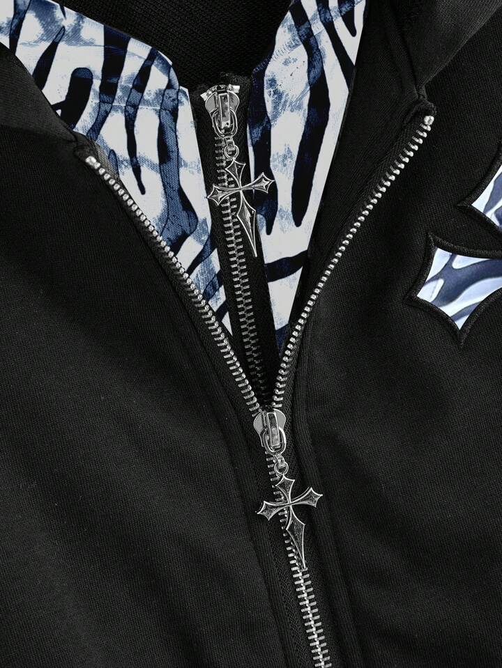 Goth Cross & Zebra Print 2 In 1 Hoodie