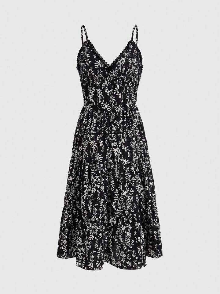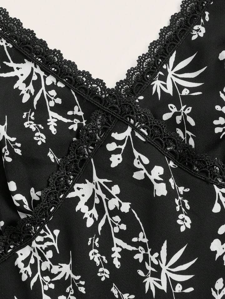 Goth Ditsy Floral Print Contrast Lace Cami Dress