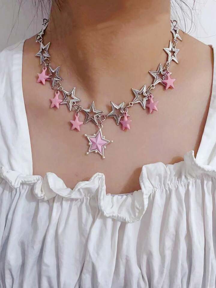 Goth European And American Style Fashionable Versatile Designed Pink Star Pendant Necklace