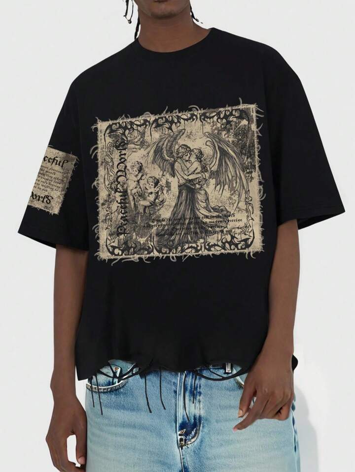 Goth Fashion Brand Men's Summer Angel Printed Short Sleeve Casual T-Shirt