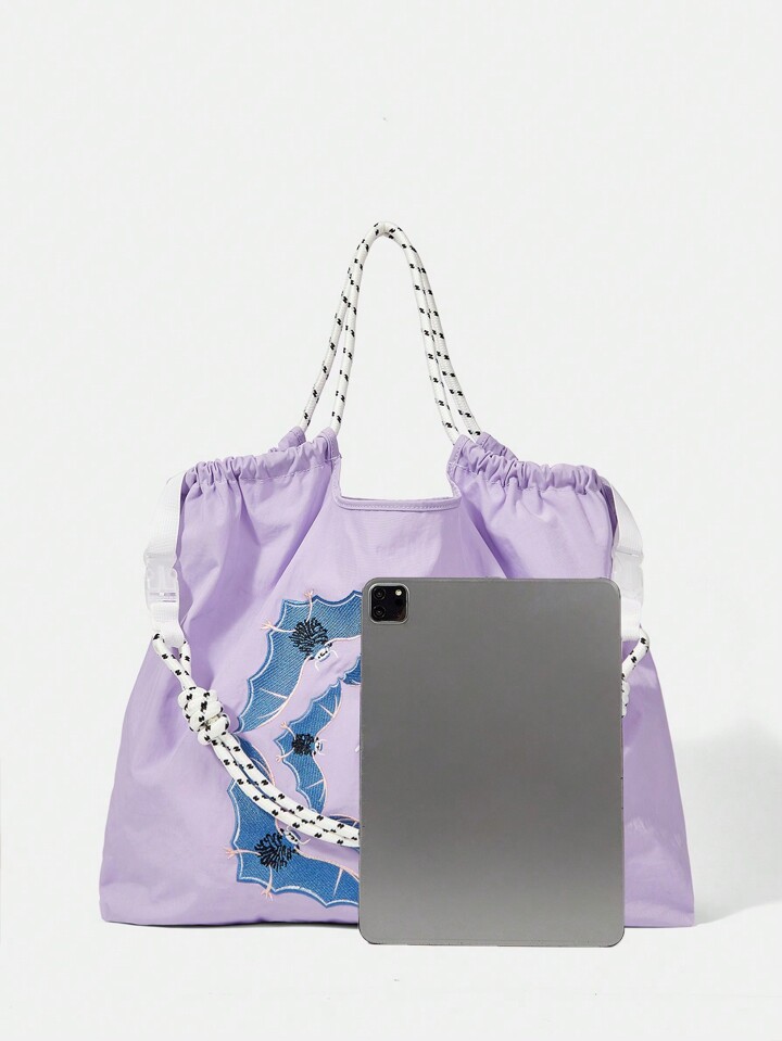 Goth Fashion Contrast Color Floral Print Drawstring Shoulder Large Capacity Tote Bag For Women