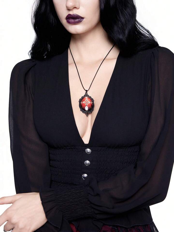 Goth Fashionable Dark Red Glass Cross Pendant Necklace