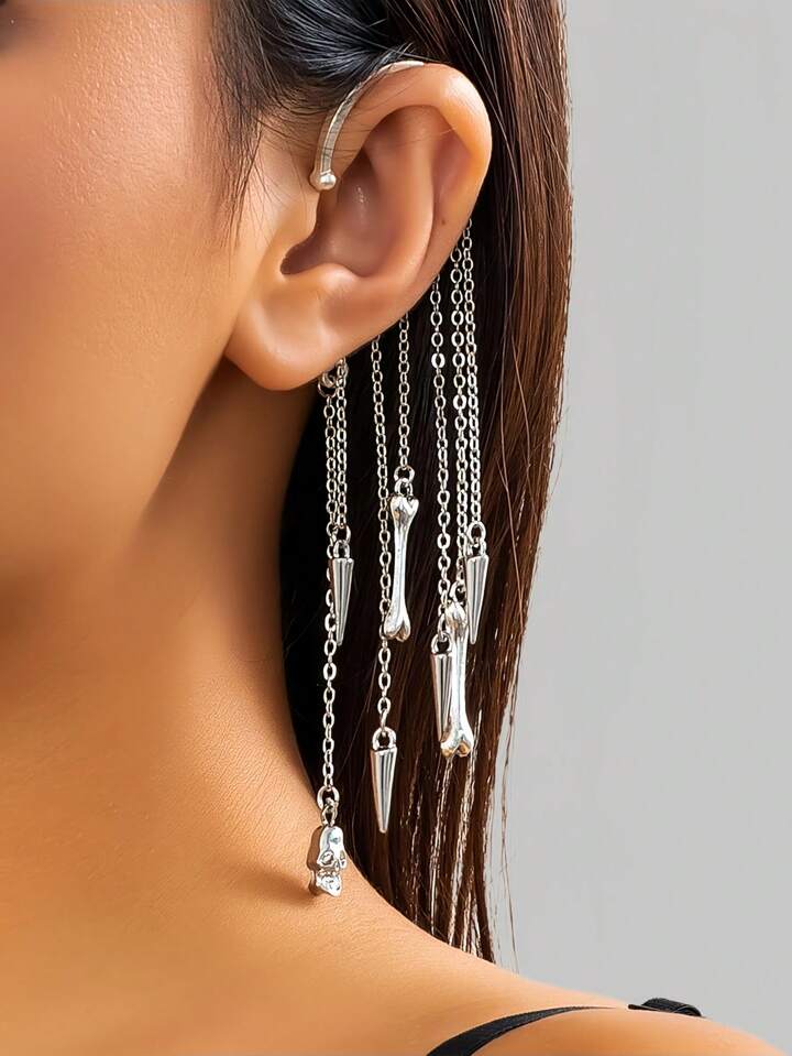 Goth Fashionable Skull Head & Bones Shaped Pendant Dangle Earrings
