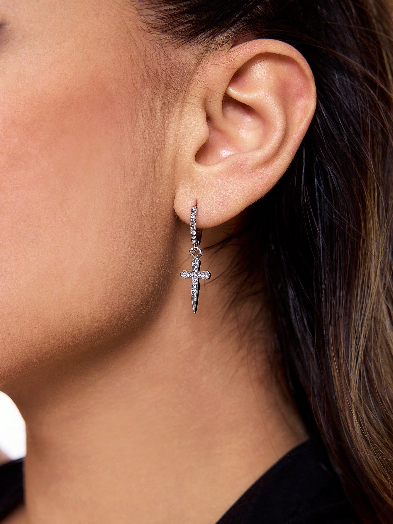 Goth Fashionable Unique Dark Diamond Cross Hoop Earrings