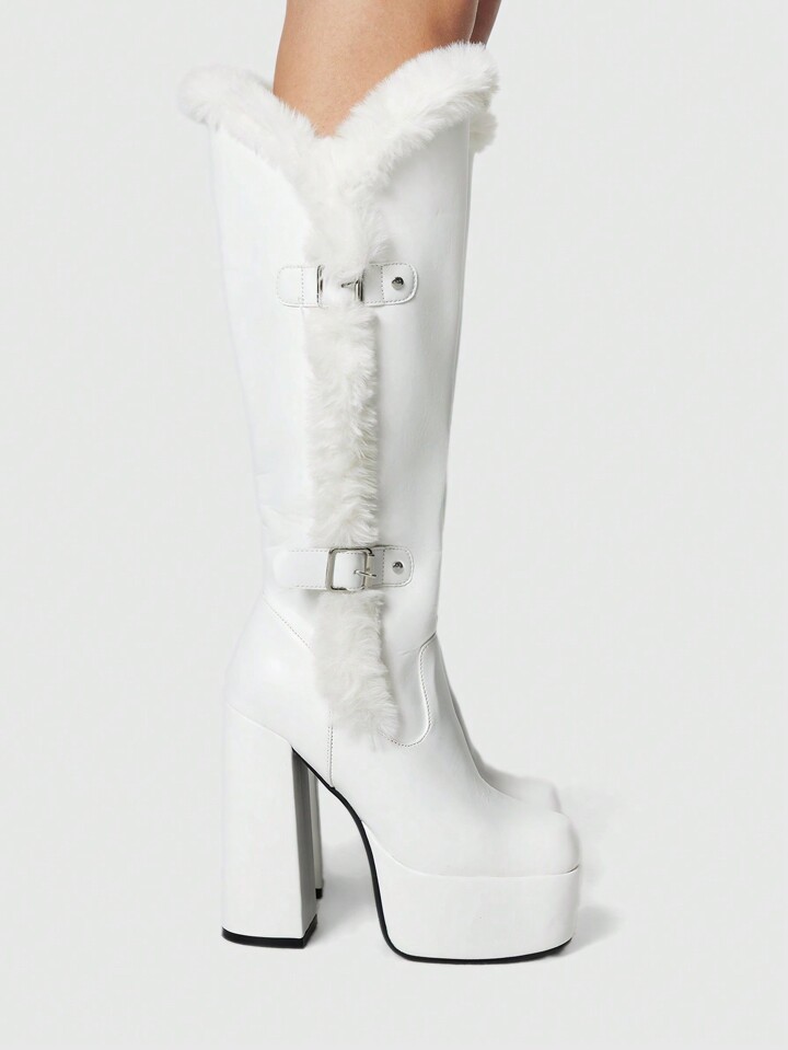 Goth Fashionable Y2K Fluffy Thick Sole Round Toe Lace-Up Punk Snow Boots