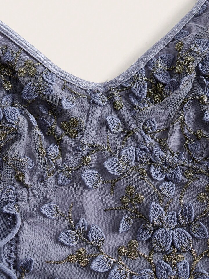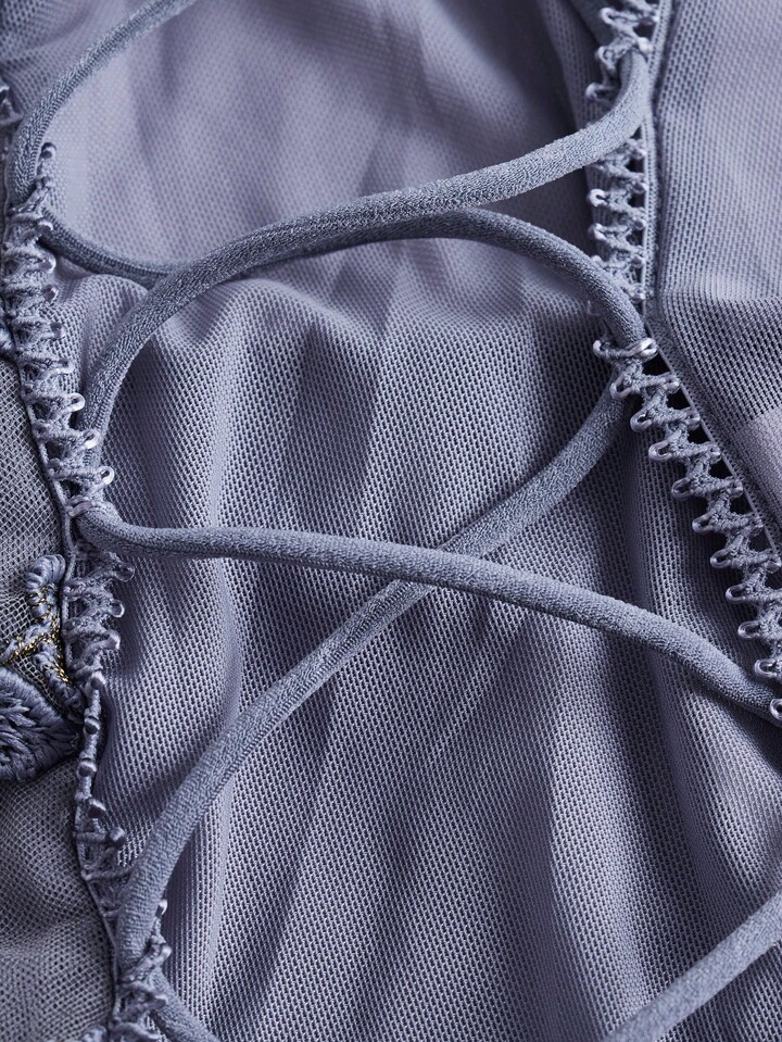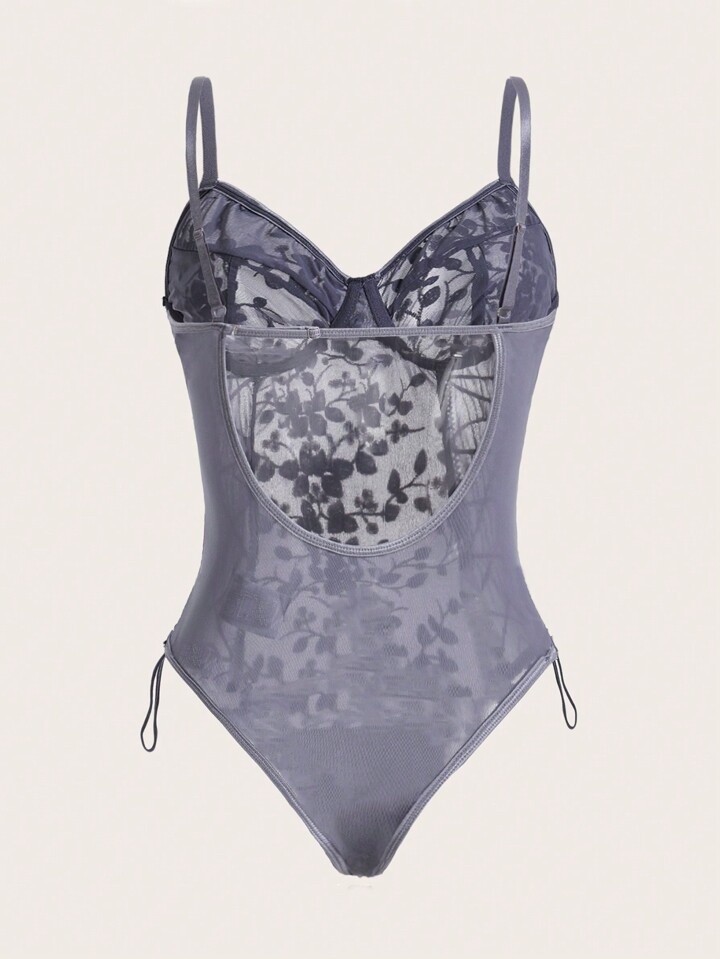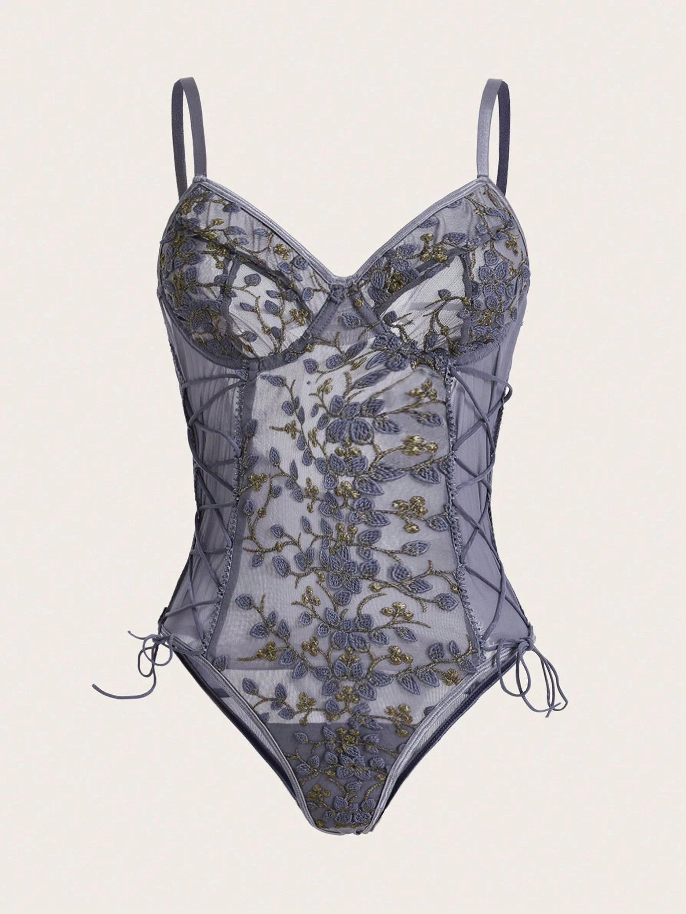 Goth Floral Embroidery Lace Up Side Teddy Bodysuit
