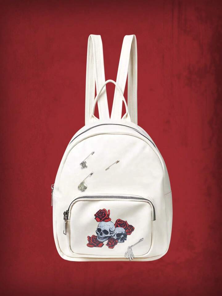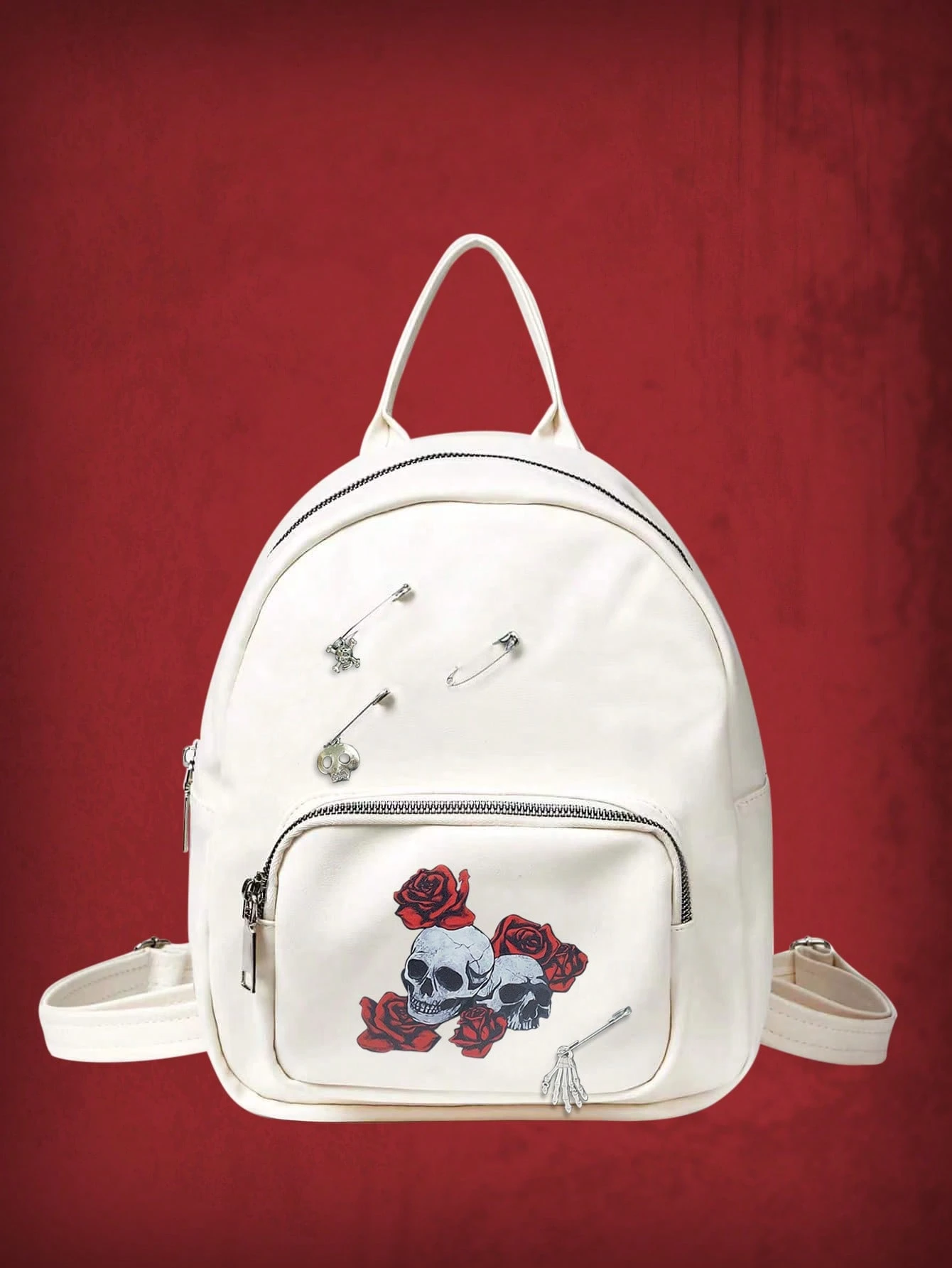 Goth Floral & Skull Pattern Pin Decor Classic Backpack