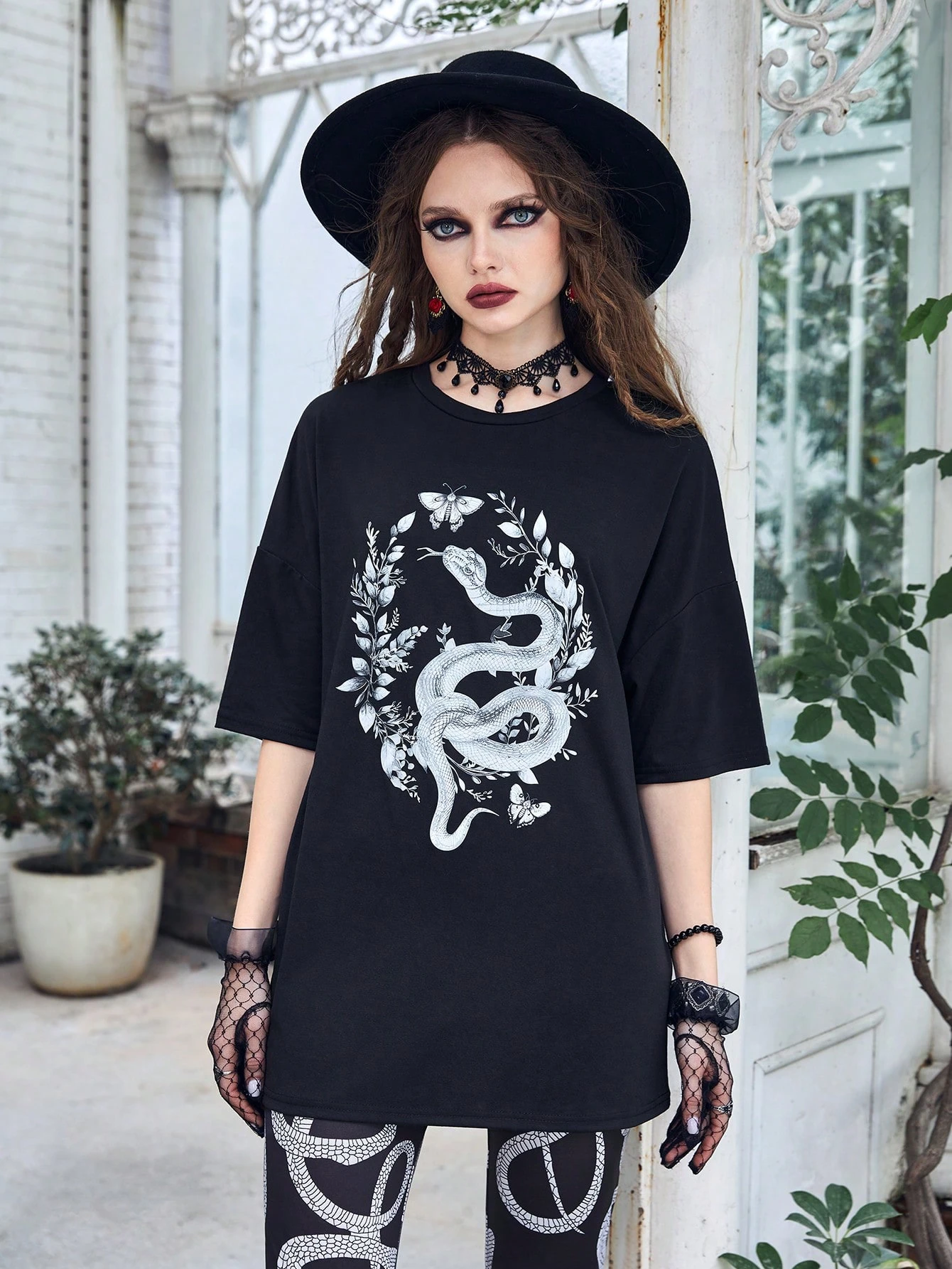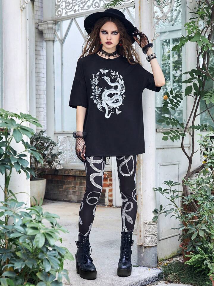 Goth Floral & Snake Graphic Tee