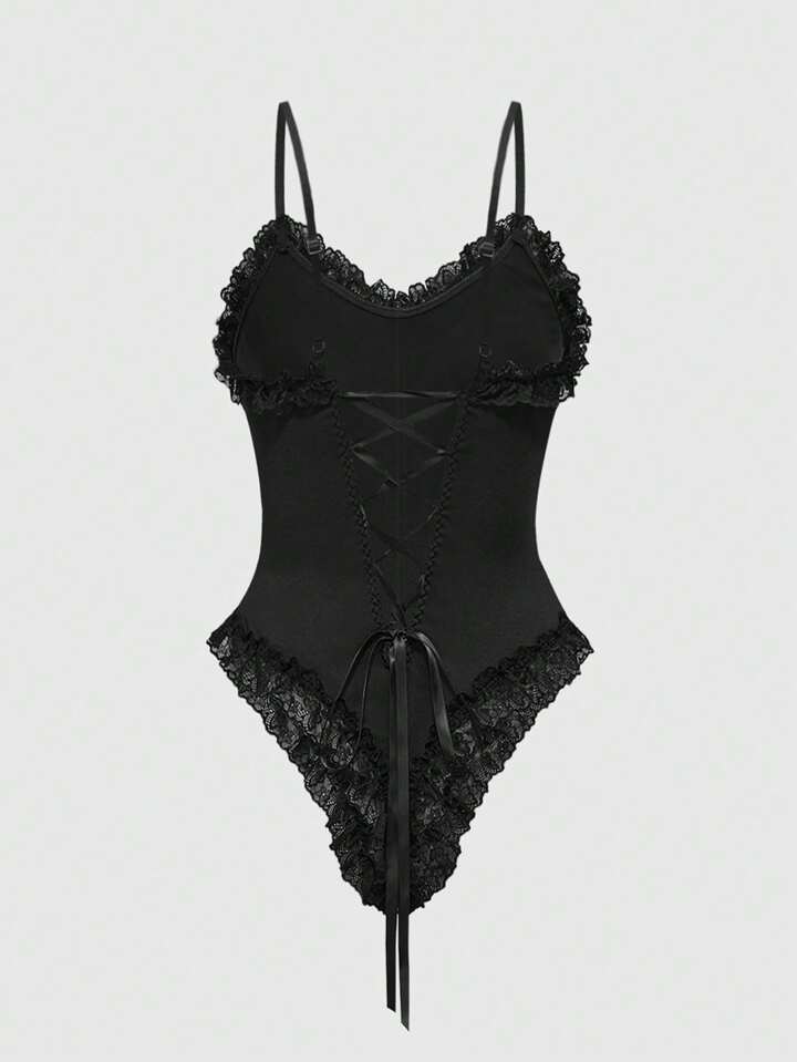Gothic Style Lace Cross & Bow Decor Jumpsuit