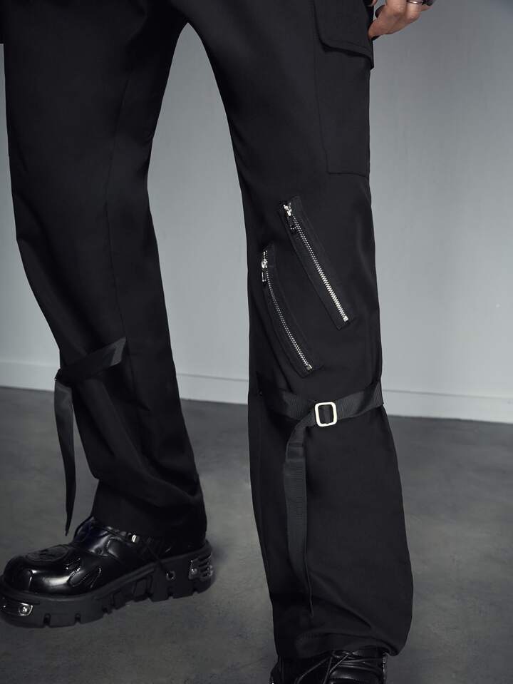 Goth Guys Flap Pocket Drawstring Waist Cargo Pants