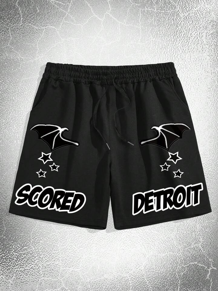 Goth Guys Letter Graphic Drawstring Waist Shorts