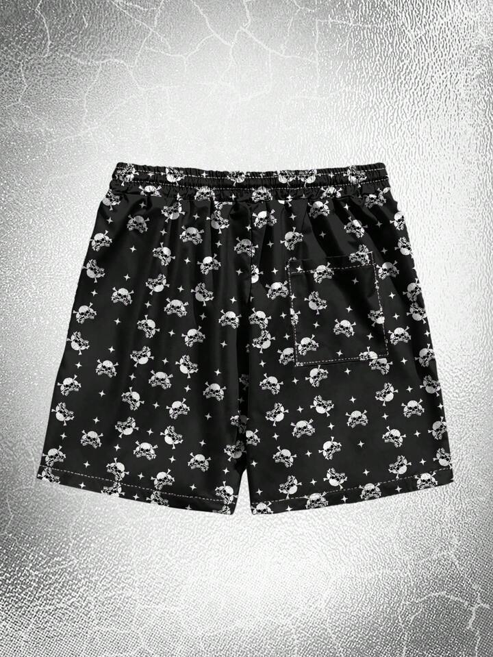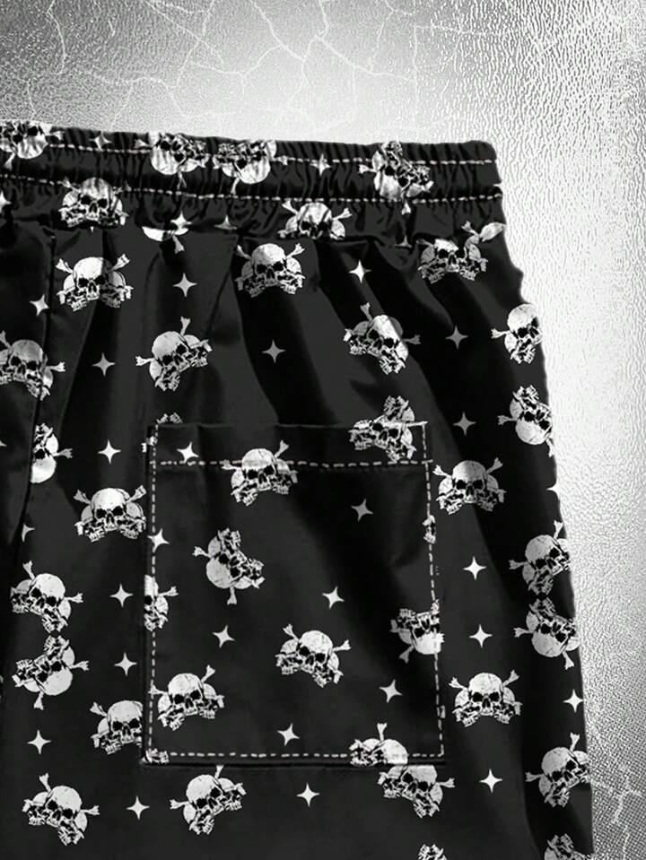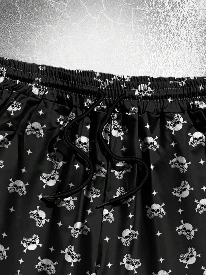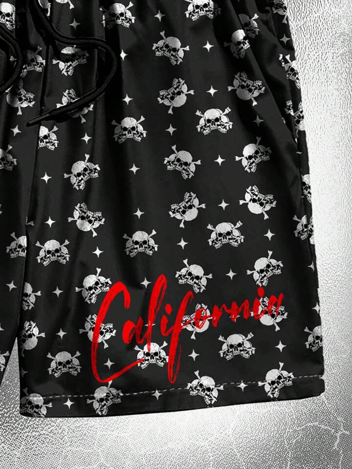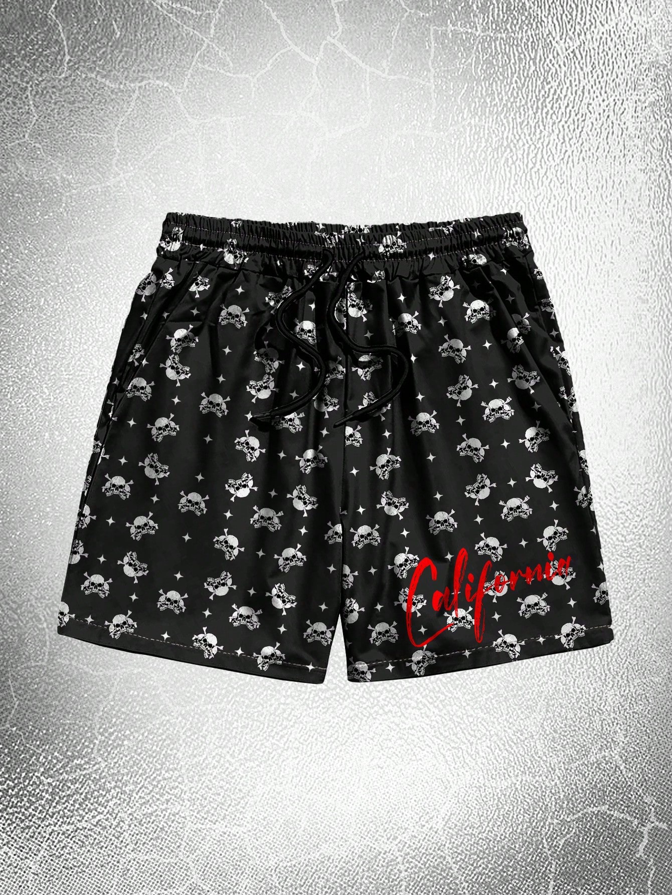 Goth Guys Letter & Skull Print Drawstring Waist Shorts
