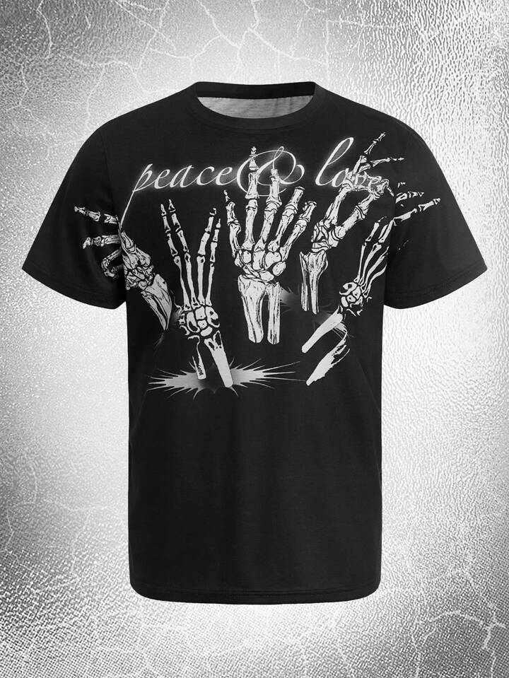 Goth Guys Skeleton Hand & Letter Graphic Tee