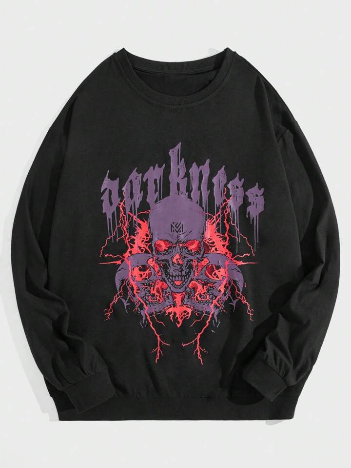 Goth Guys Skull & Letter Graphic Sweatshirt