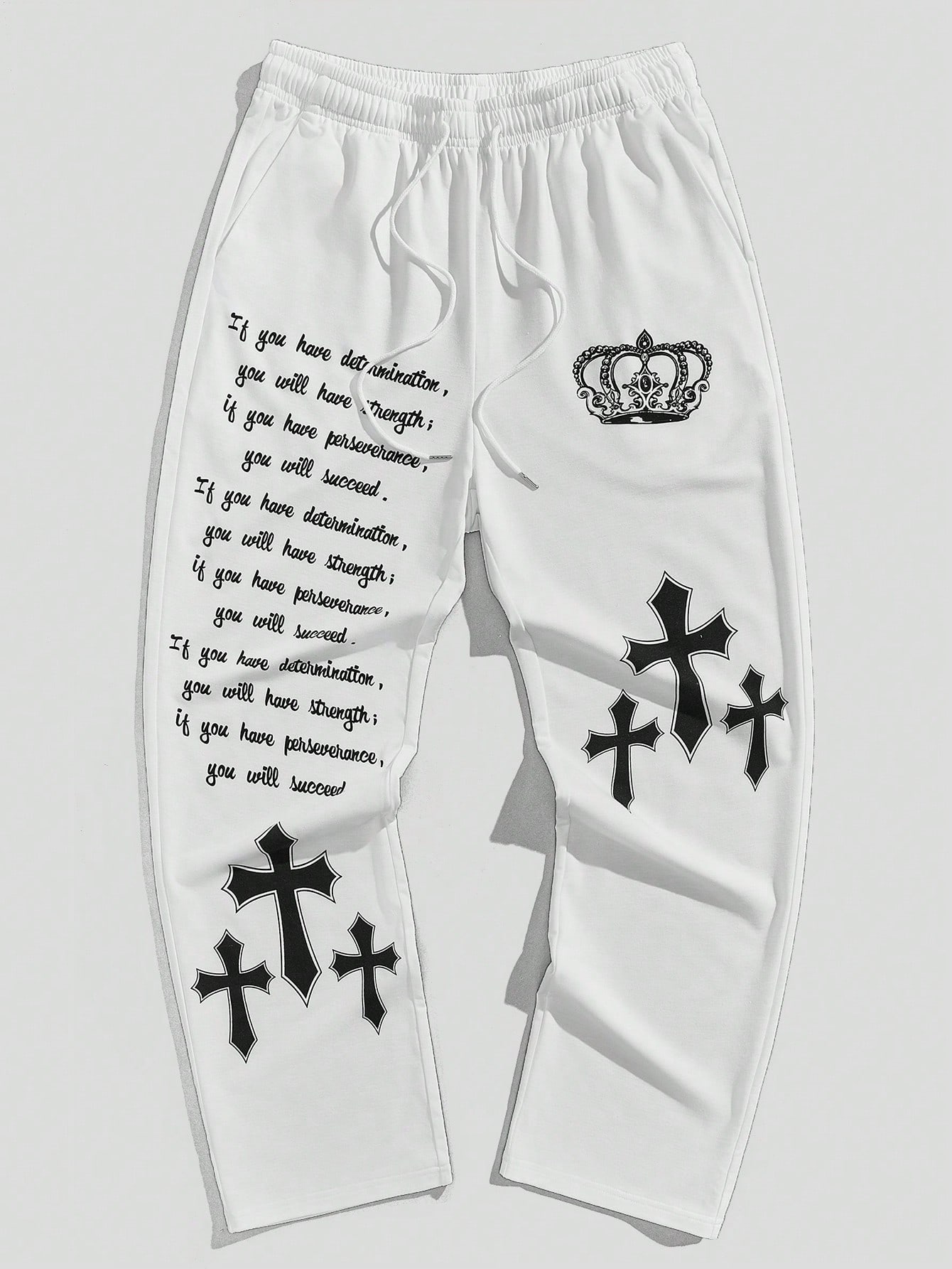 Goth Guys Slogan Graphic Drawstring Waist Sweatpants