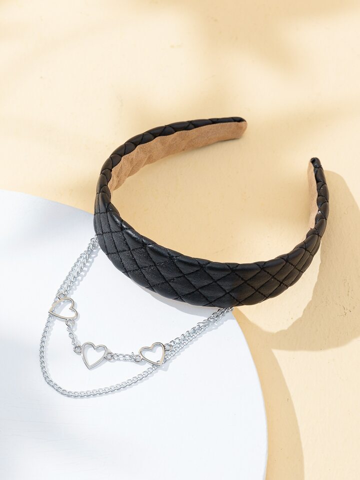 Goth Heart-ring & Chain Decor Quilted Detail Headband