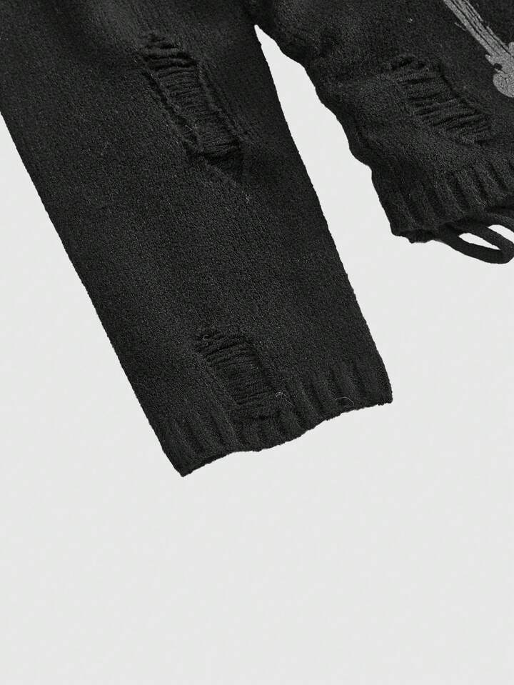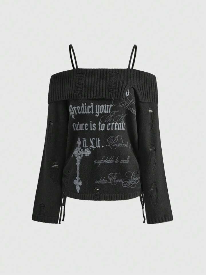 Goth Kpop Punk Cross Cutout Off-Shoulder Fitted Sweater