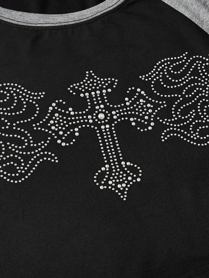 Goth Ladies' Cross Rhinestone Transfer Short Sleeve Tee