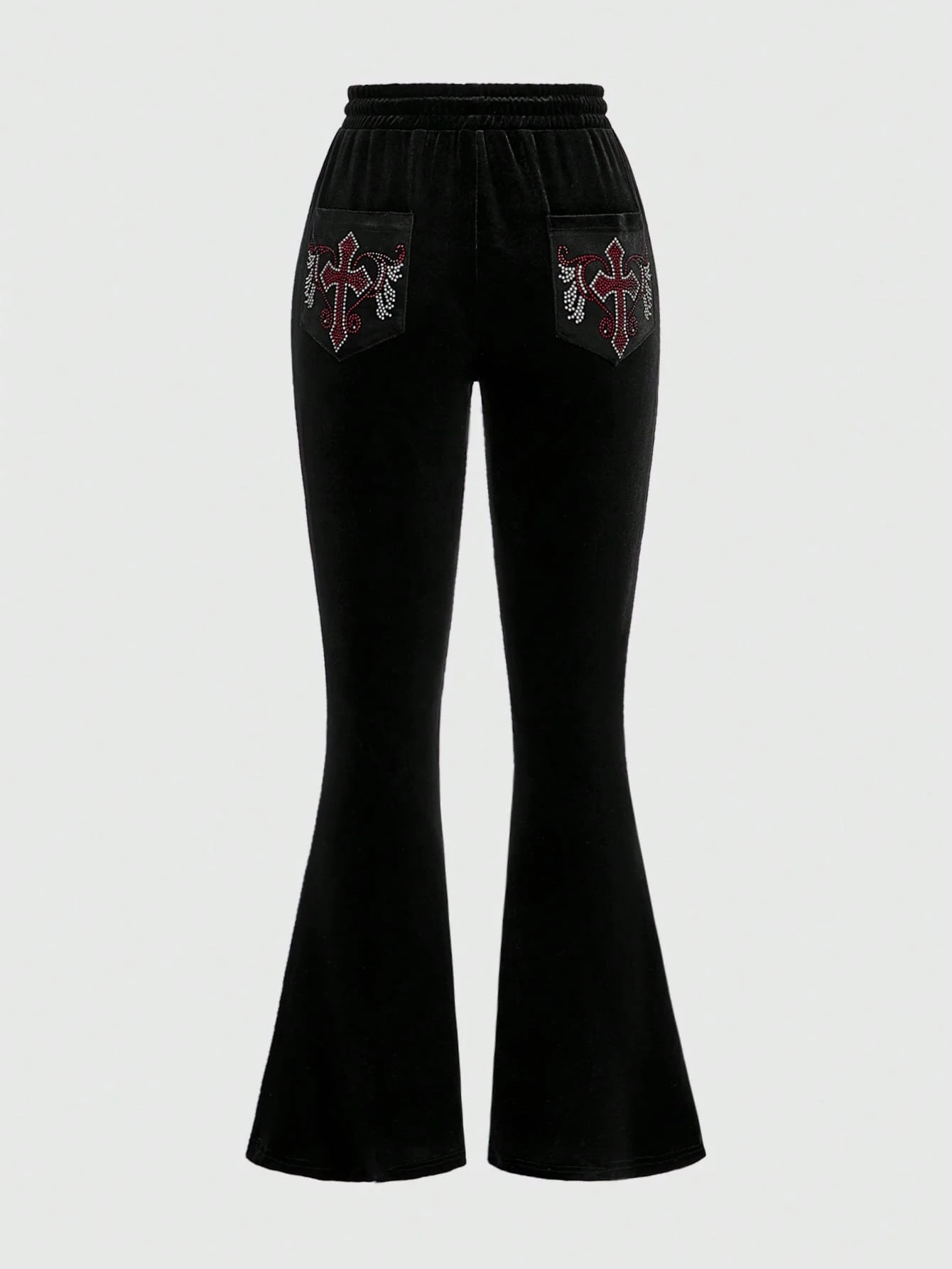 Goth Ladies' Flared Pants With Rhinestone Embellishments