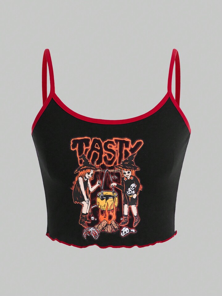Goth Letter & Figure Graphic Contrast Binding Cami Top
